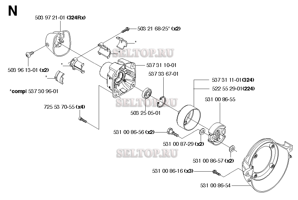 Сцепление для триммера Husqvarna 324 RX, взрыв-схема: