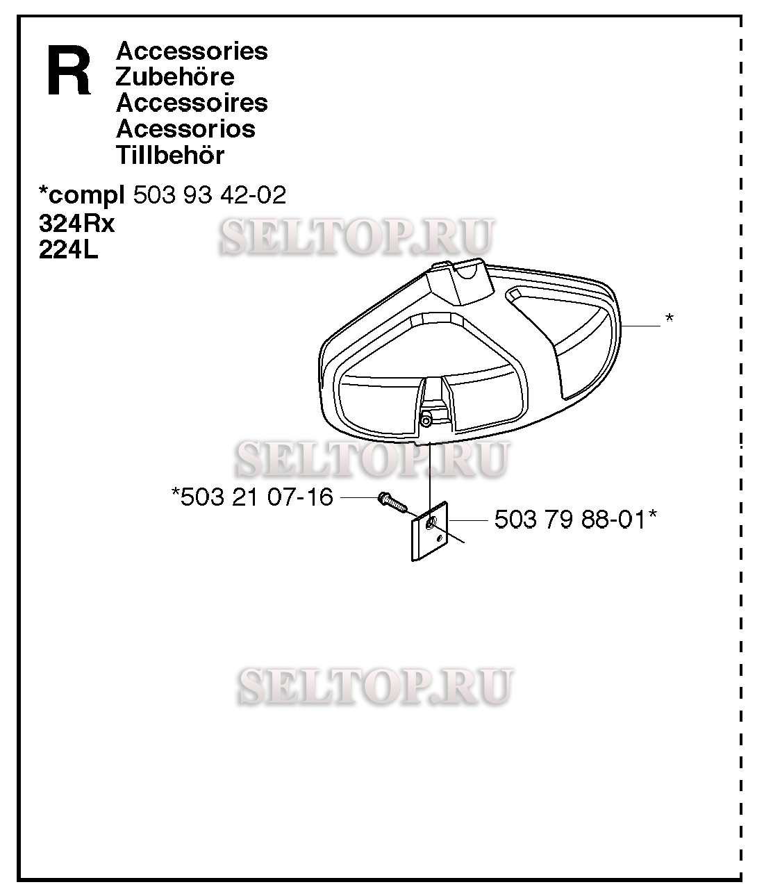 Защита (вариант 2) для триммера Husqvarna 324 RX, взрыв-схема: