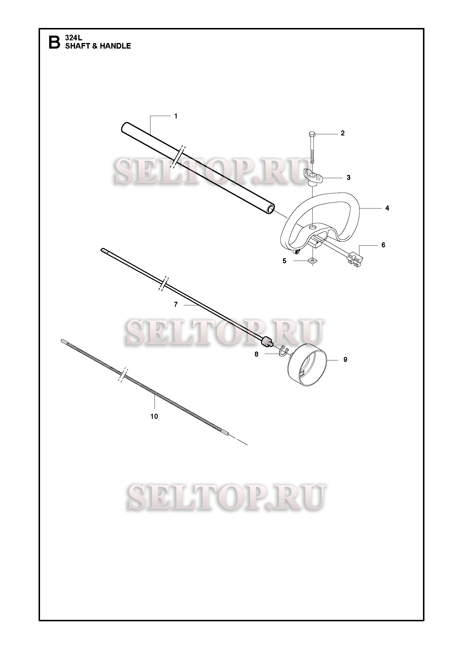 Вал привода, ручка для триммера Husqvarna 324 L, взрыв-схема: