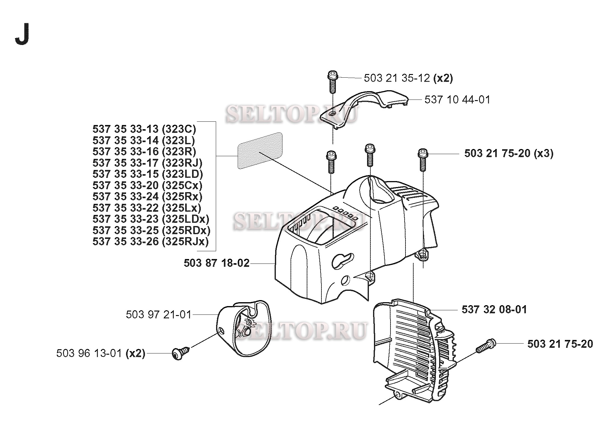 Крышка цилиндра для триммера Husqvarna 325 Lx (с 2005-05), взрыв-схема: