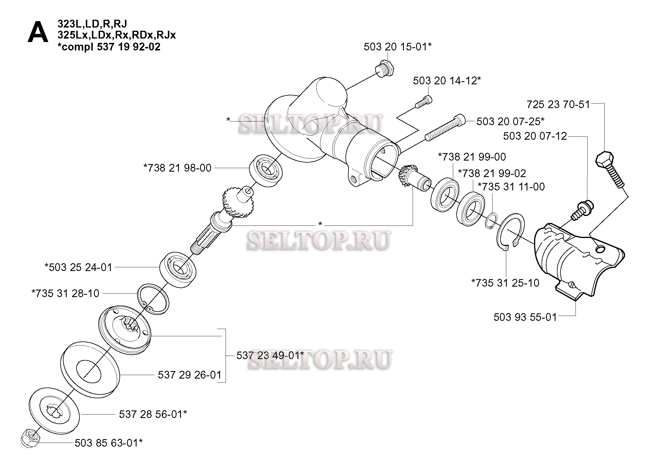 Редуктор для триммера Husqvarna 325 Lx (с 2005-05), взрыв-схема: