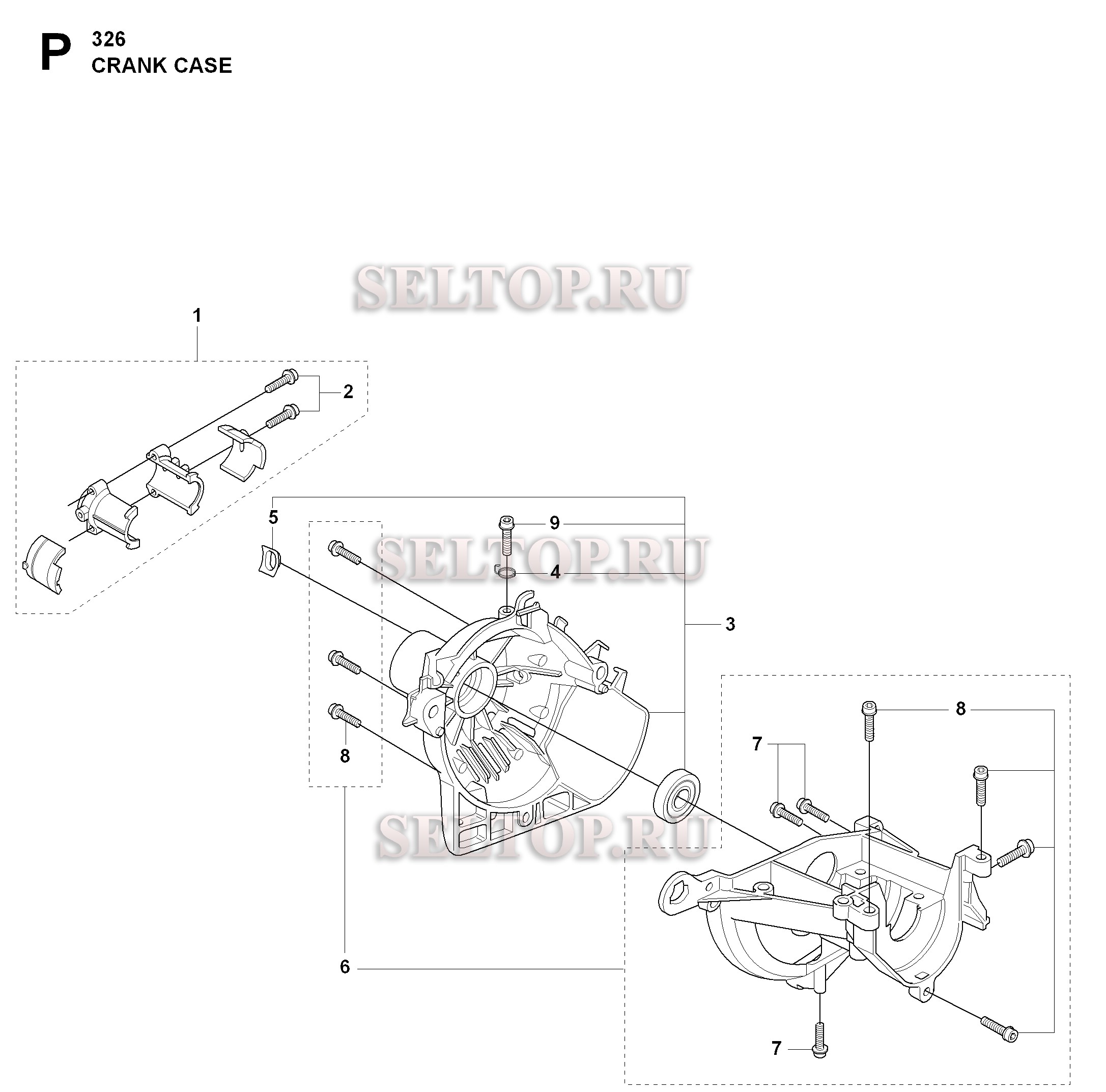 Картер, барабан сцепления для триммера Husqvarna 325 Lx (с 2008-03), взрыв-схема: