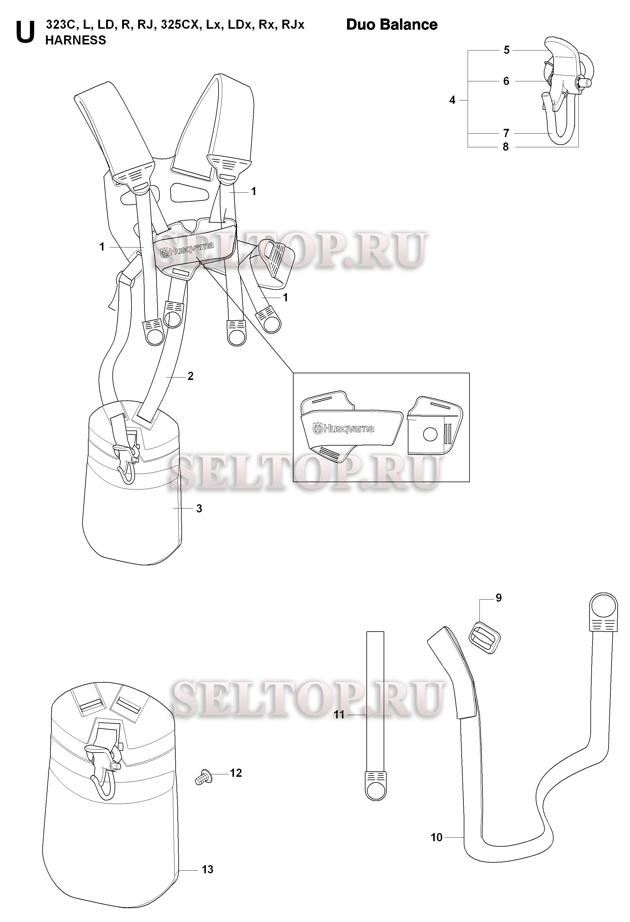 Подвесная система для триммера Husqvarna 325 Lx (с 2008-03), взрыв-схема: