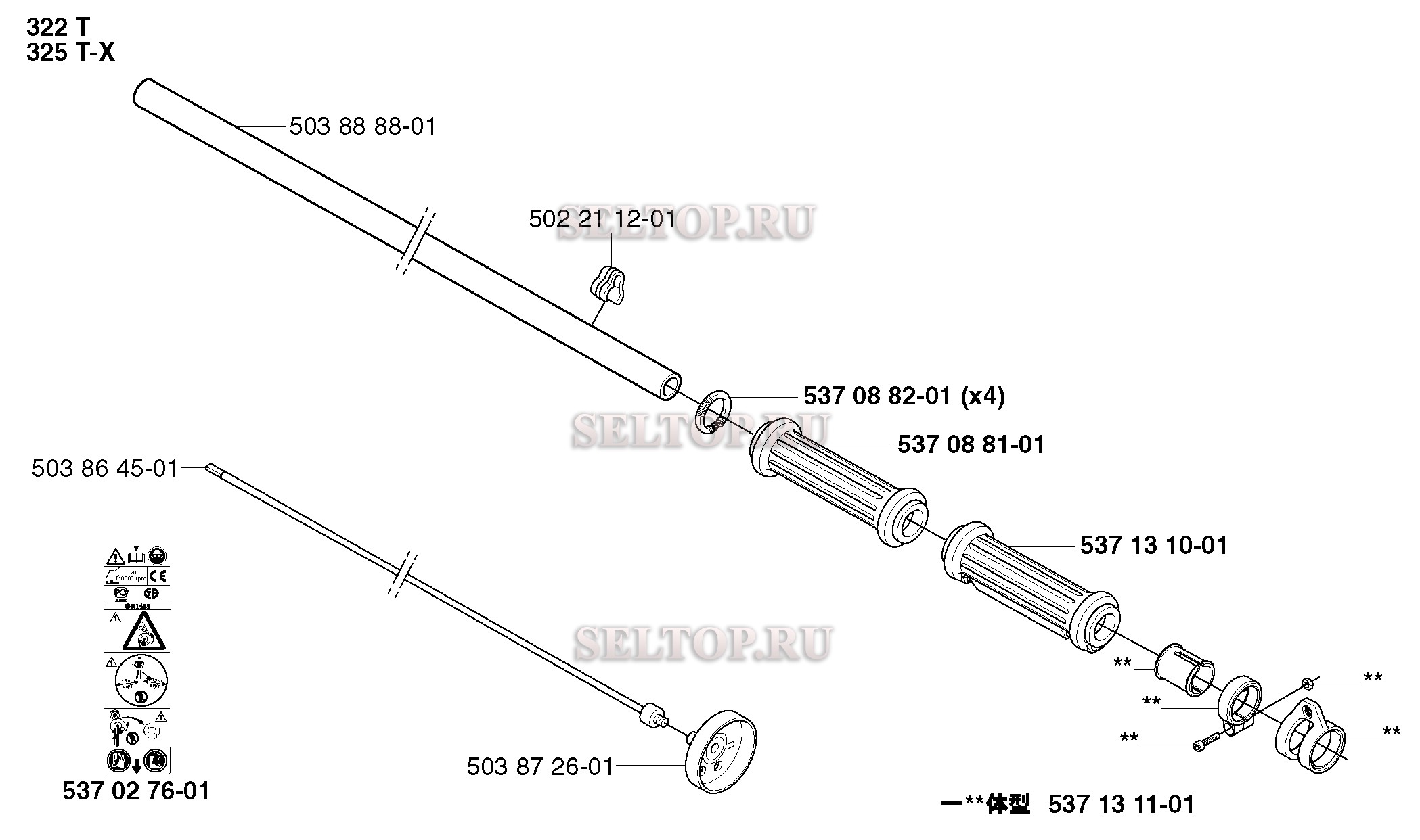 Ведущий вал для триммера Husqvarna 325 TX (с 2000-05), взрыв-схема: