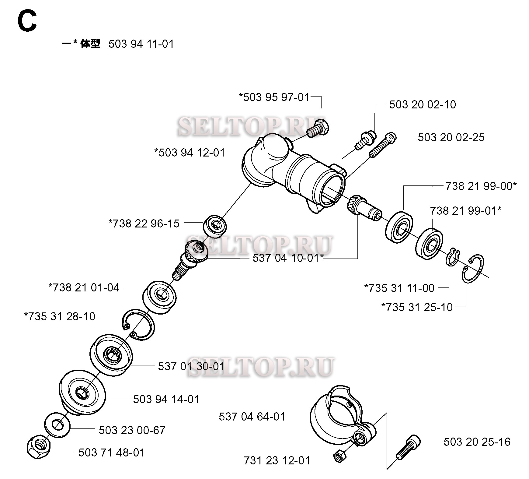 Редуктор для триммера Husqvarna 325 TX (с 2001-02), взрыв-схема:
