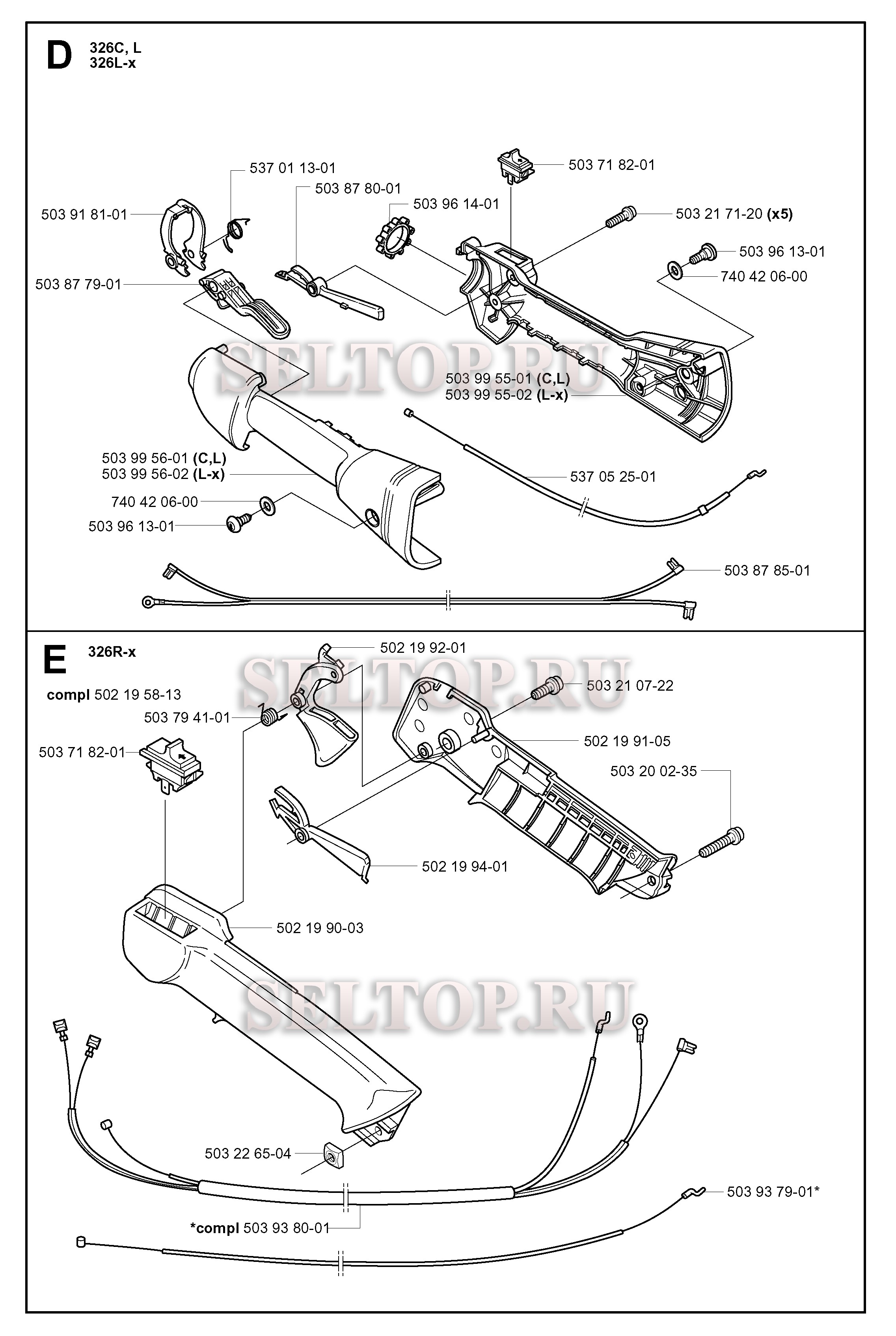 Управление дросселем для триммера Husqvarna 326 C (с 2001-03), взрыв-схема:
