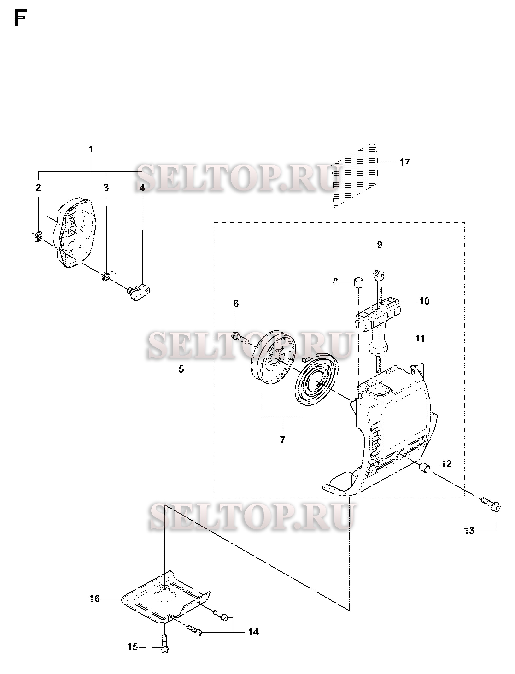 Стартер для триммера Husqvarna 326 ES (вариант 2), взрыв-схема: