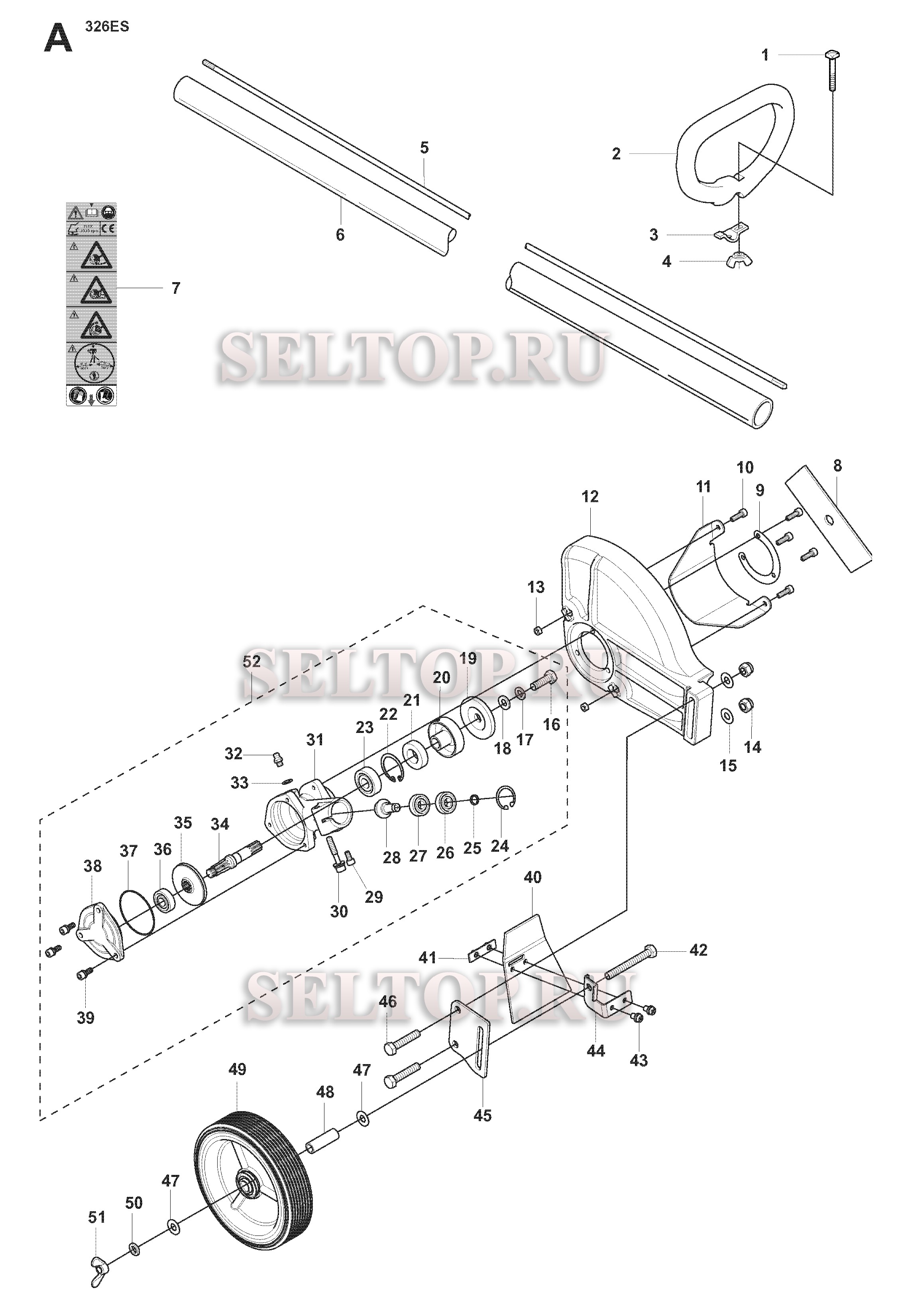 Вал привода, ручка для триммера Husqvarna 326 ES, взрыв-схема: