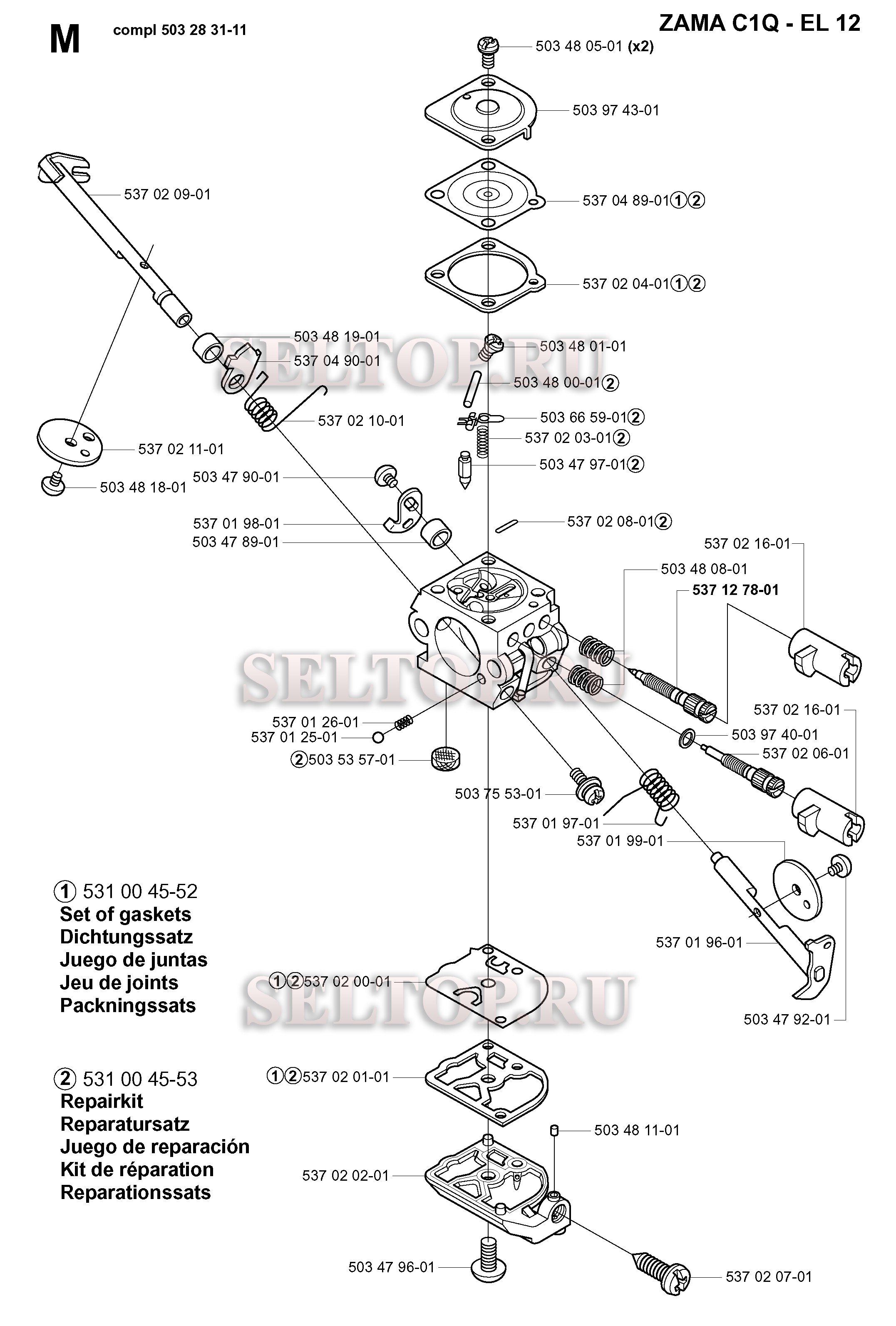 Запчасти карбюратора для триммера Husqvarna 326 EX (с 2001-03)