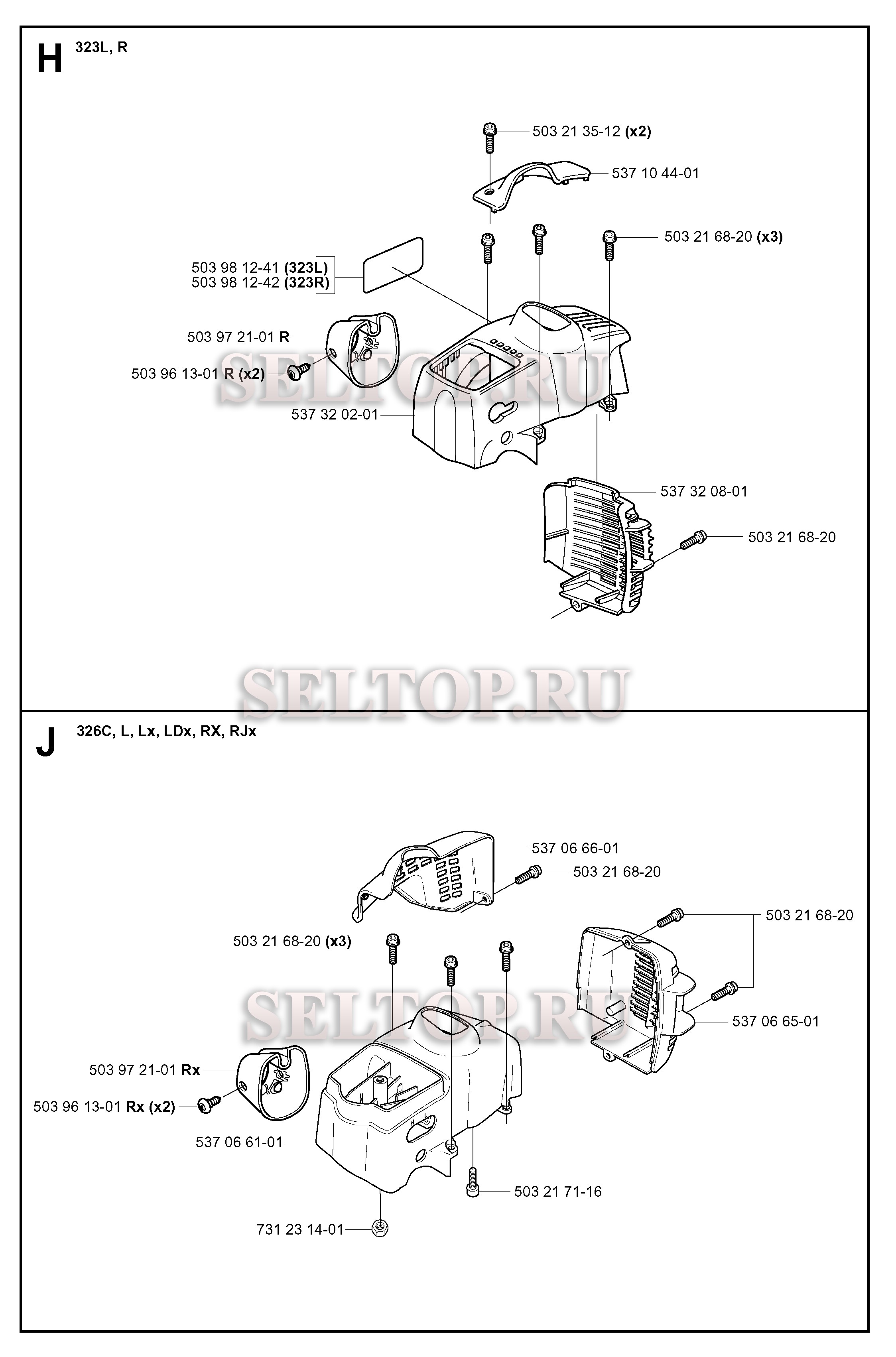 Кожух для триммера Husqvarna 326 L (с 2004-03), взрыв-схема: