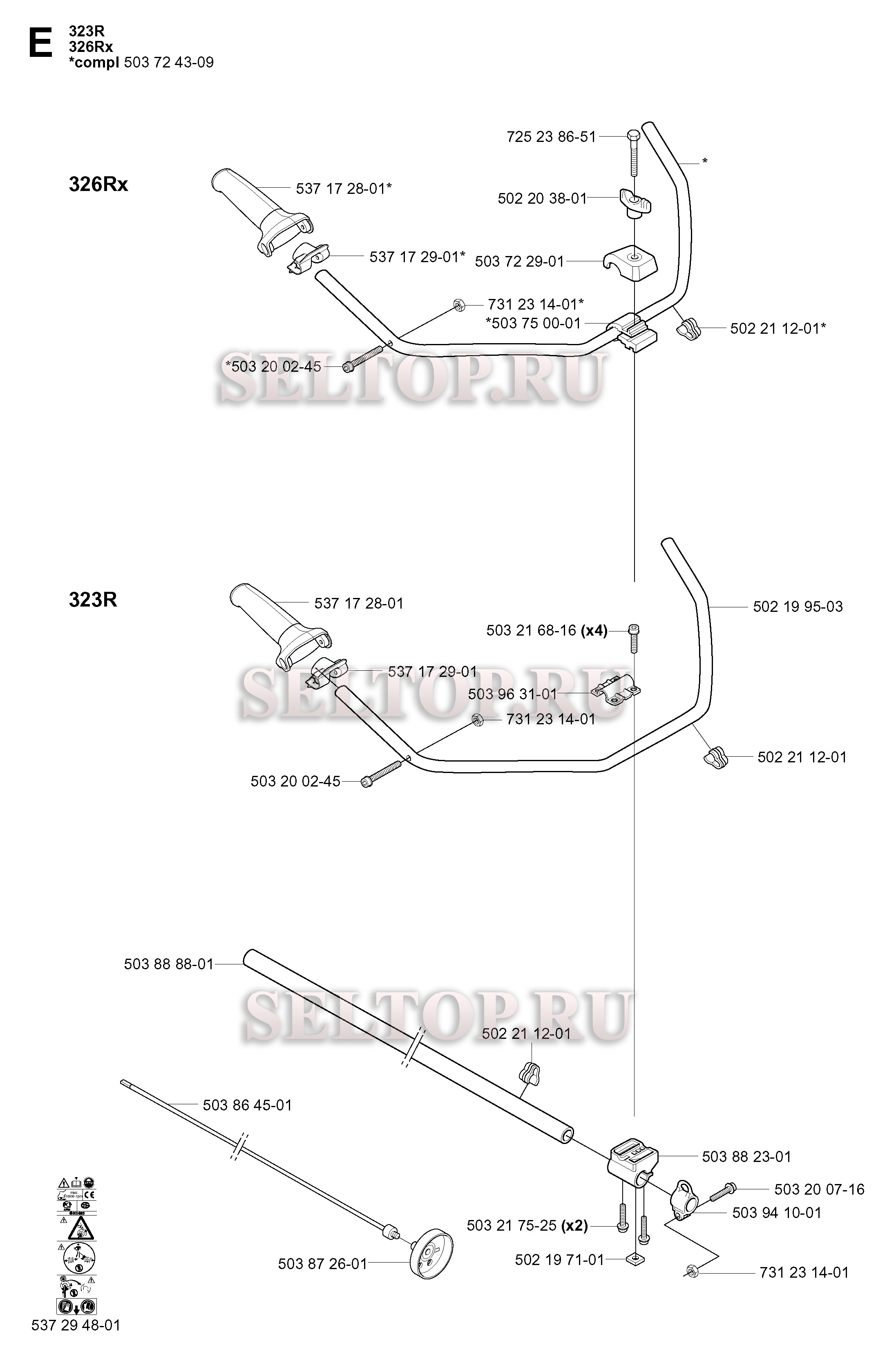 Вал привода, ручка для триммера Husqvarna 326 LDx (с 2004-03), взрыв-схема: