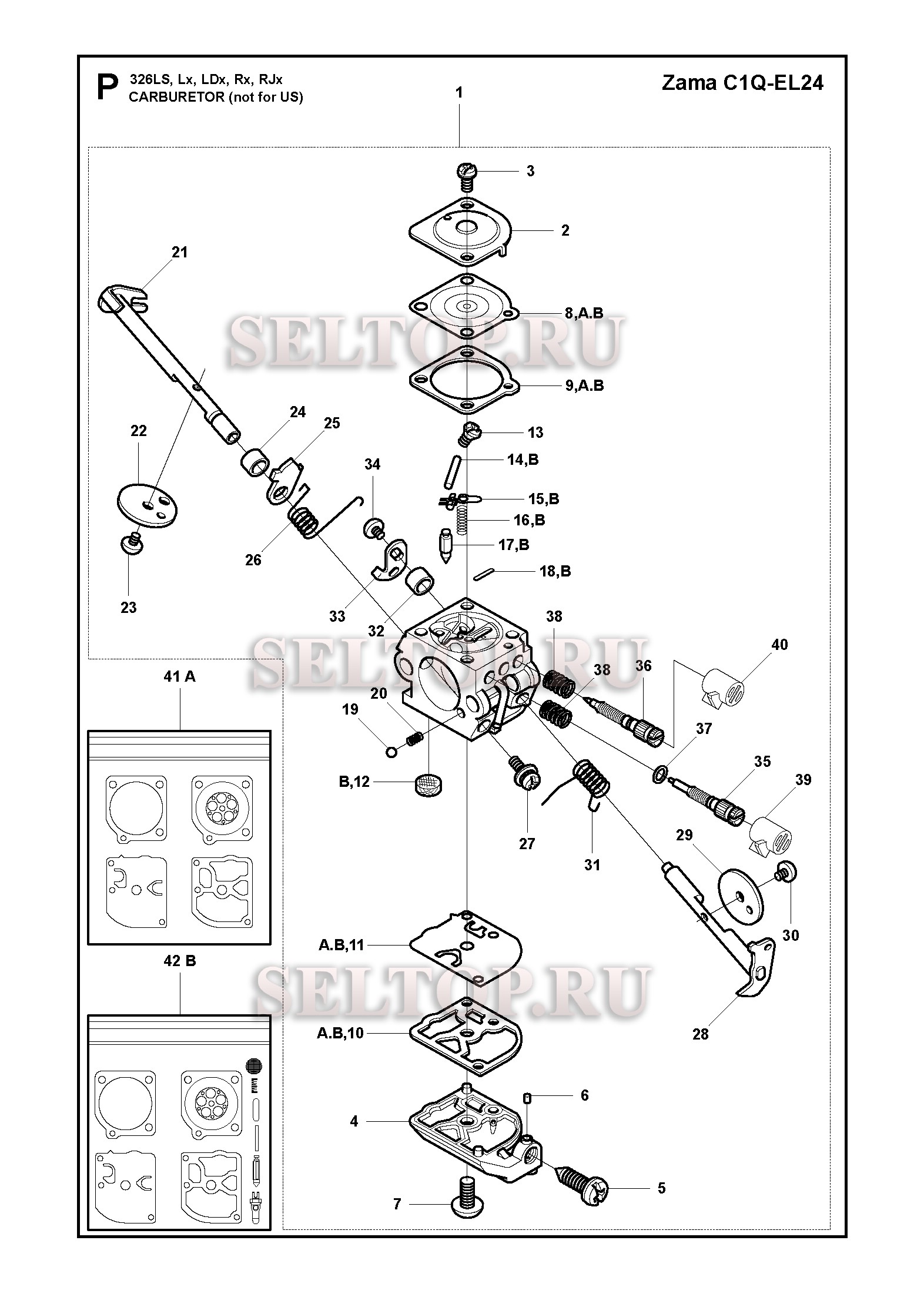 Карбюратор (не для США) для триммера Husqvarna 326 LDx (с 2009-05), взрыв-схема: