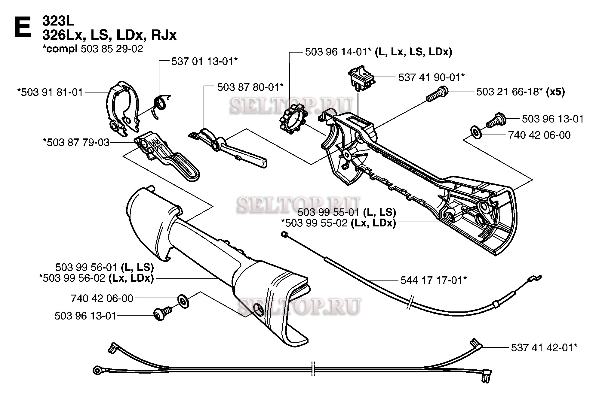 Ручка, рычаги управления для триммера Husqvarna 326 LS (артикул модели 966763205) (с 2007-01), взрыв-схема: