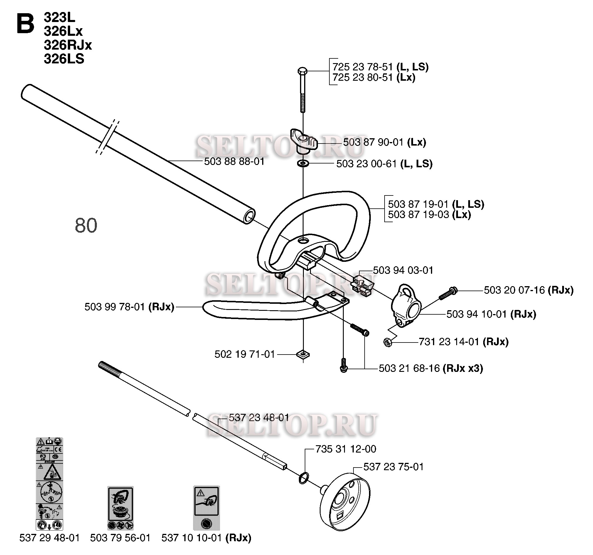 Вал привода, ручка для триммера Husqvarna 326 LS (артикул модели 966763205) (с 2007-01), взрыв-схема:
