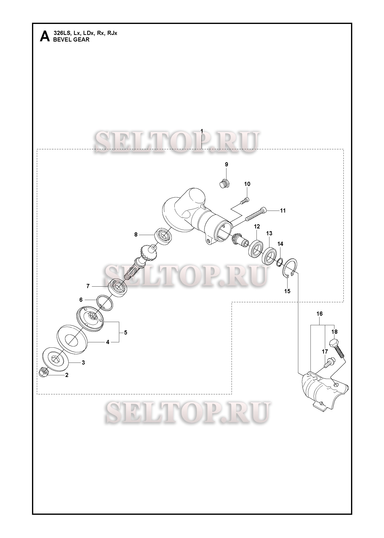 Редуктор для триммера Husqvarna 326 LS (артикул модели 966763205) (с 2009-05), взрыв-схема: