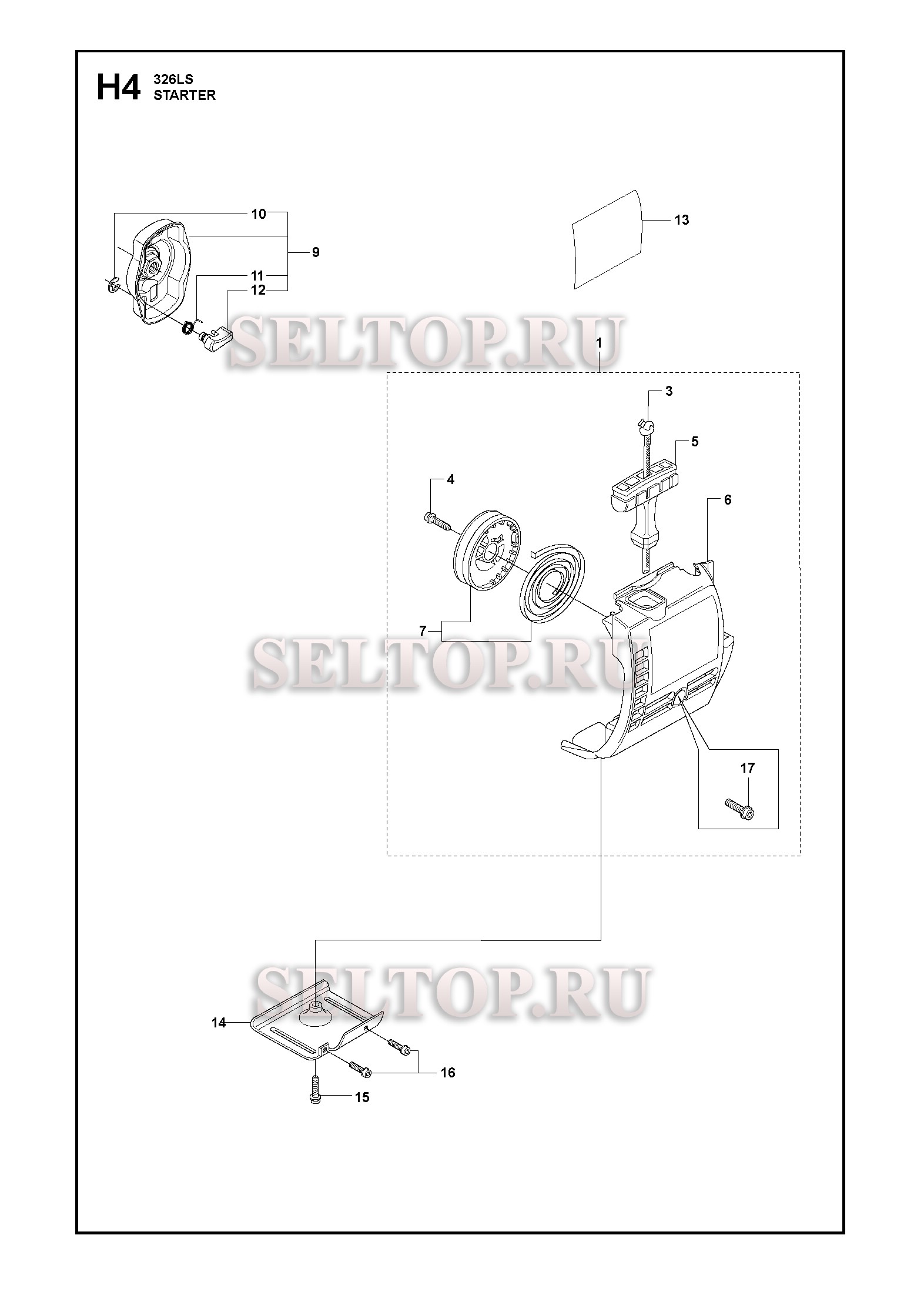 Стартер для триммера Husqvarna 326 LS (артикул модели 966763205) (с 2009-05) (вариант 2)