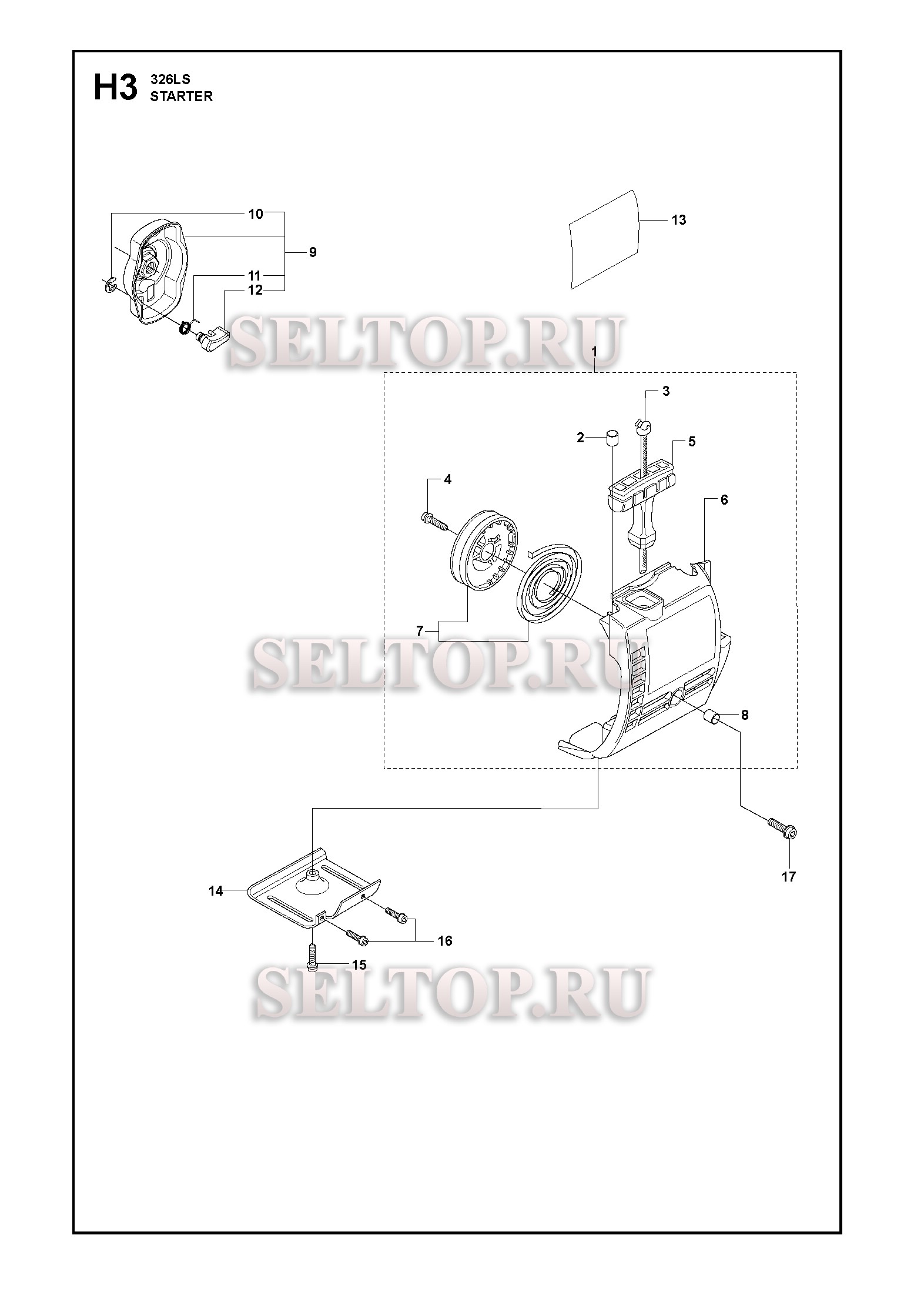 Стартер для триммера Husqvarna 326 LS (артикул модели 966763205) (с 2009-05)