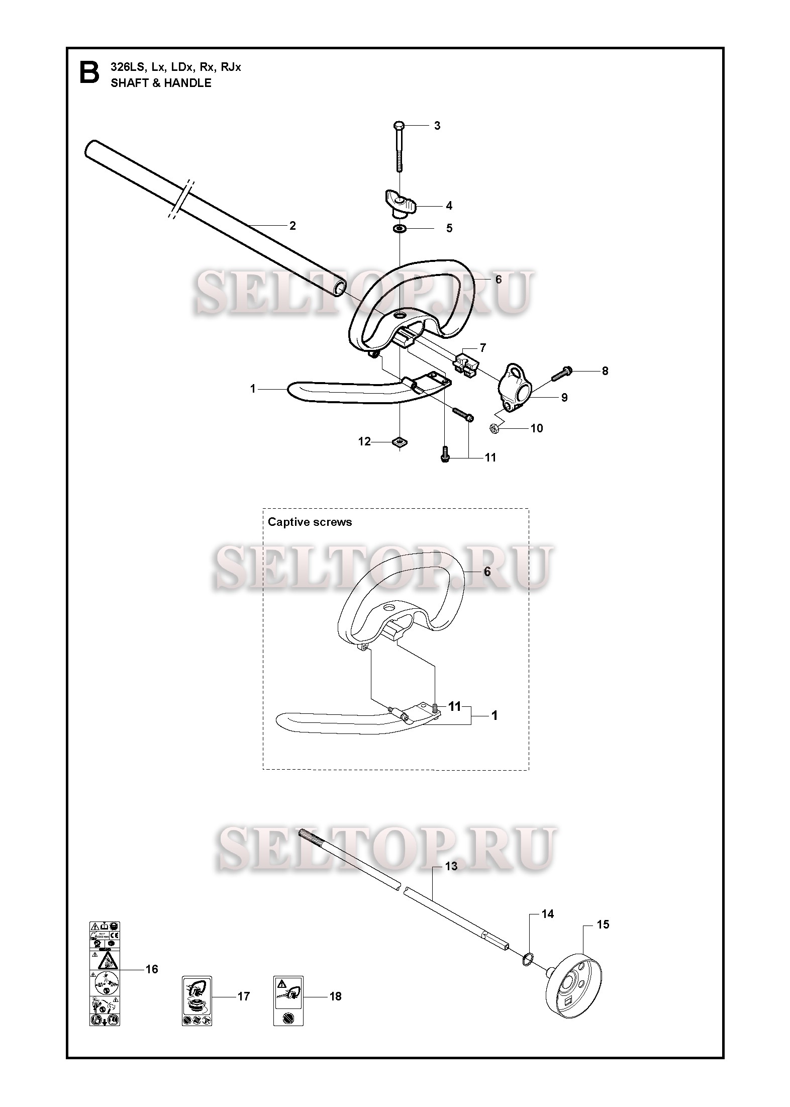 Вал привода, ручка для триммера Husqvarna 326 LS (артикул модели 966763205) (с 2009-05)