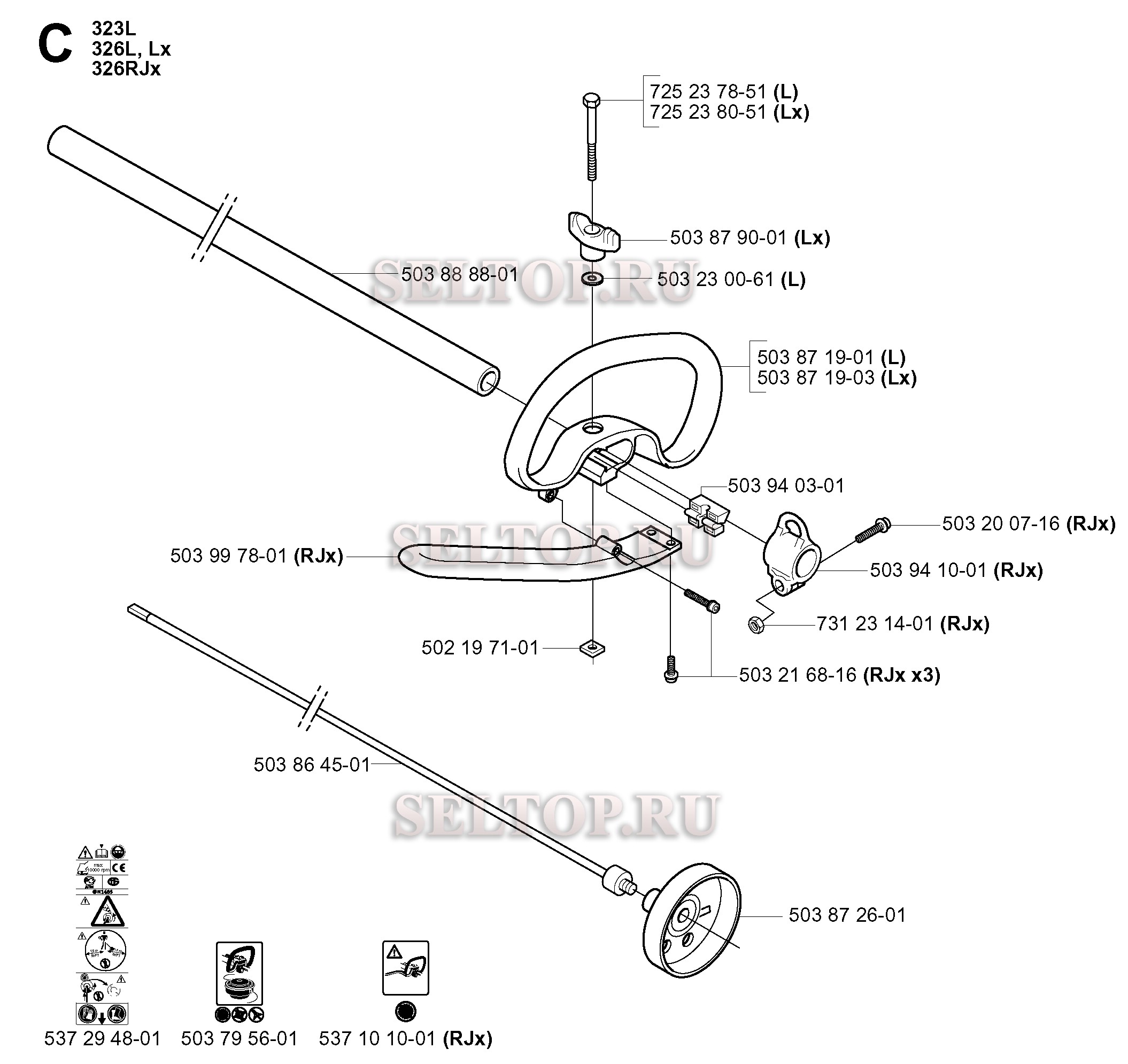 Вал привода, ручка для триммера Husqvarna 326 Lx (с 2004-03), взрыв-схема: