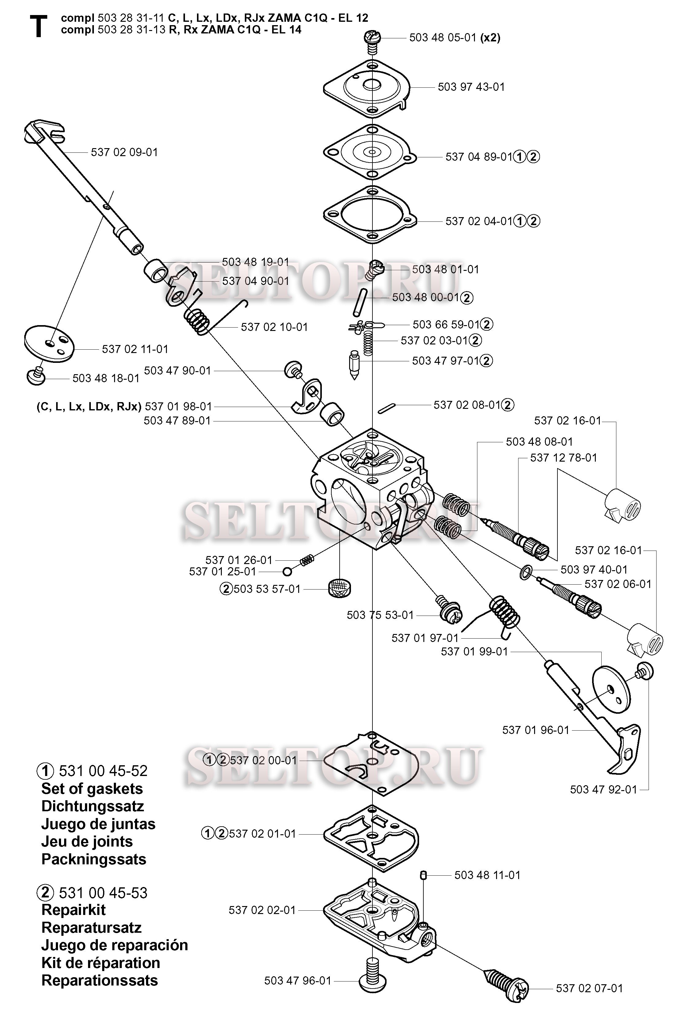 Карбюратор (не для США) для триммера Husqvarna 326 Lx (с 2006-04), взрыв-схема: