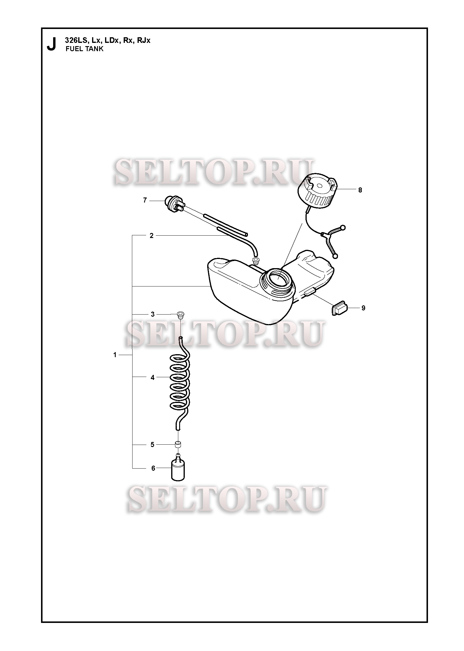 Топливный бак для триммера Husqvarna 326 Lx (с 2009-05), взрыв-схема: