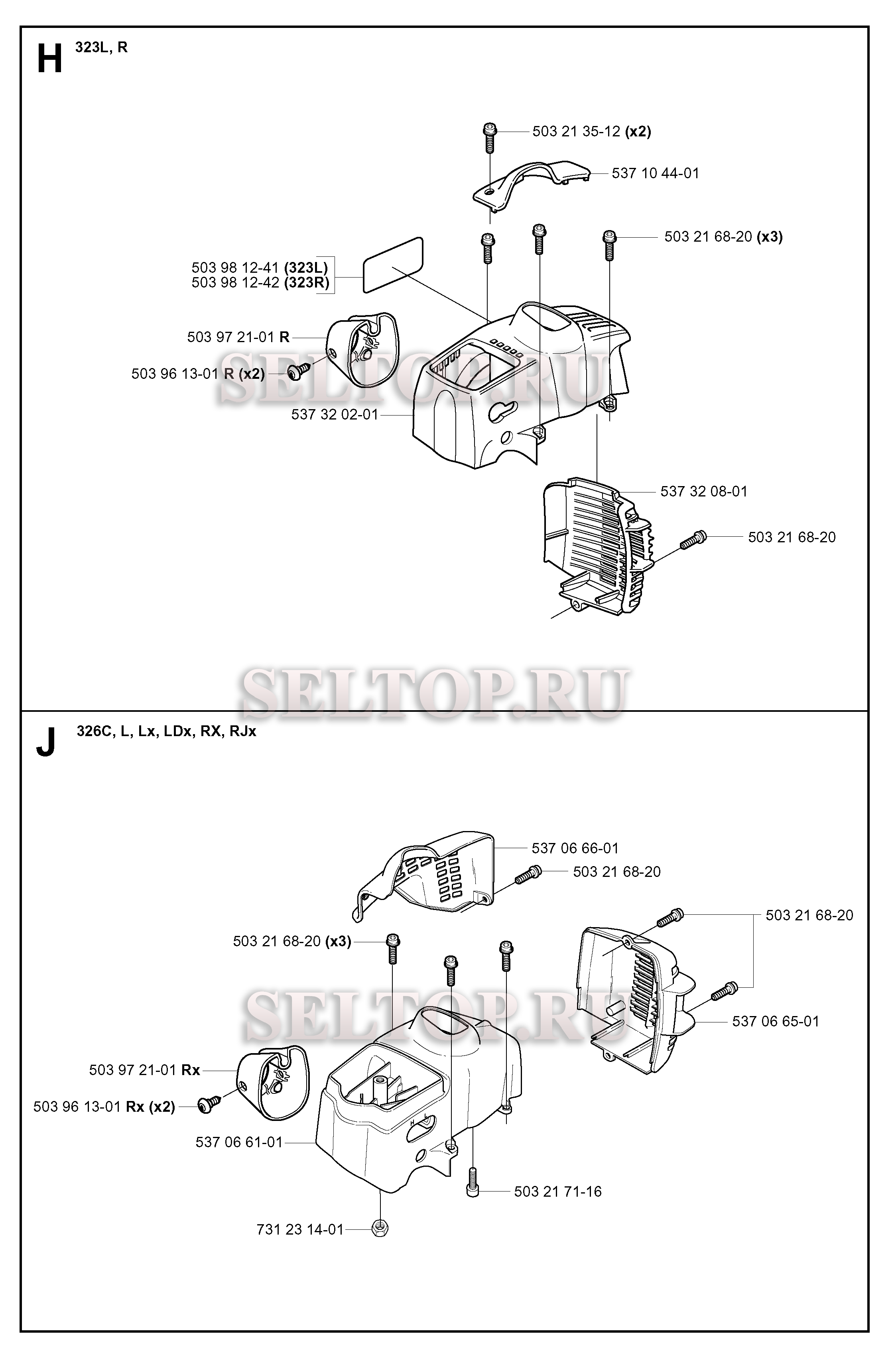 Кожух для триммера Husqvarna 326 RJX (c 2004-03), взрыв-схема: