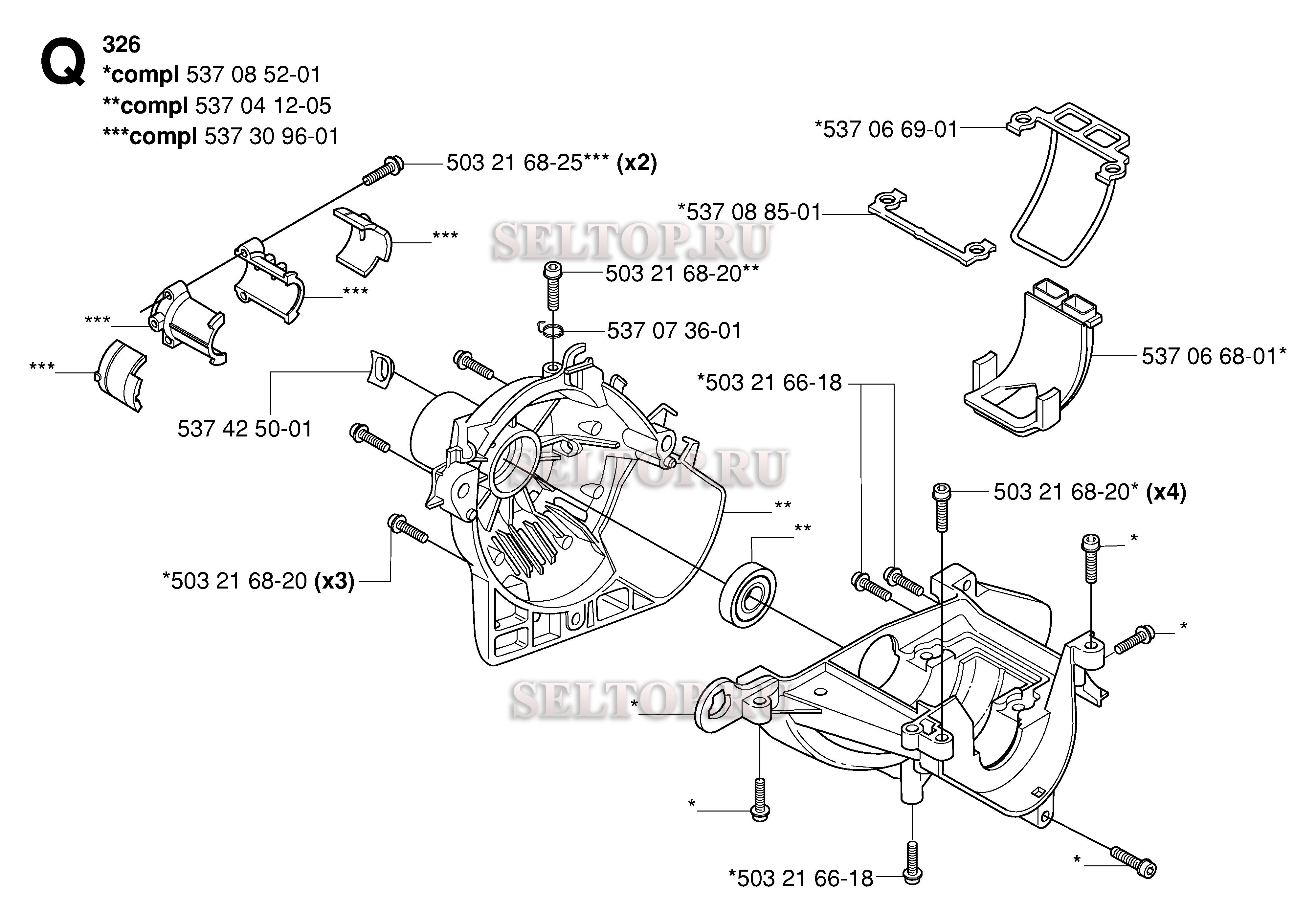 Картер для триммера Husqvarna 326 RJX (c 2006-04), взрыв-схема: