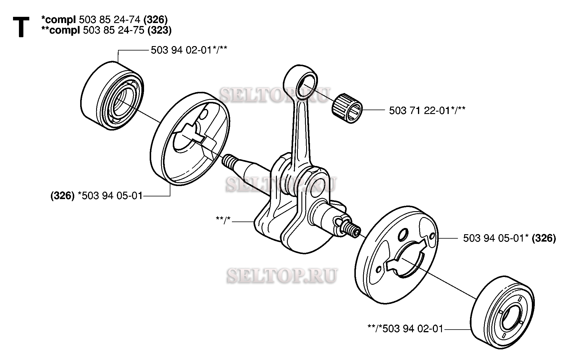Коленвал для триммера Husqvarna 326 RJX (c 2006-04), взрыв-схема: