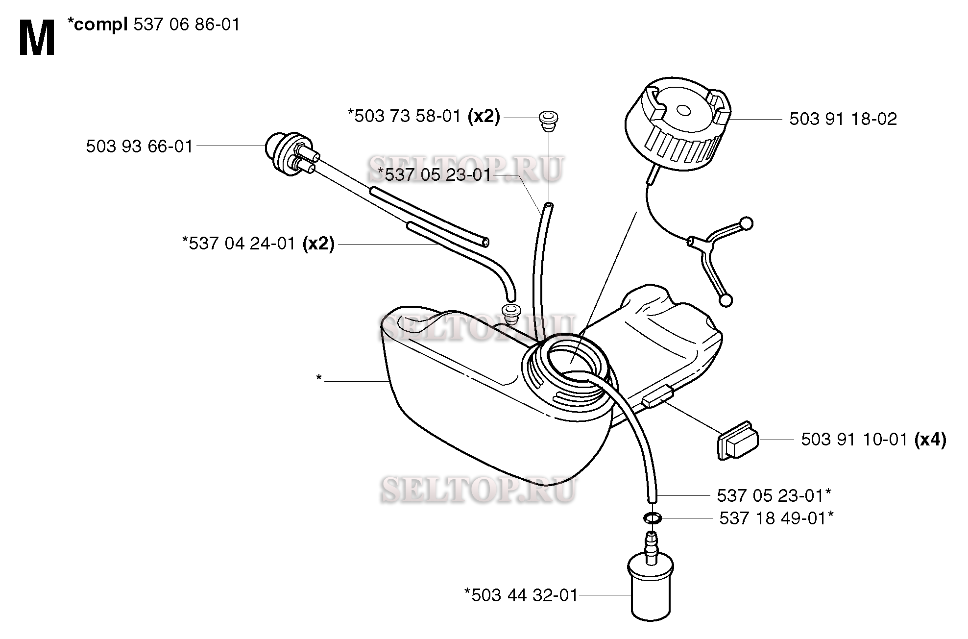 Топливный бак для триммера Husqvarna 326 RX (c 2002-08), взрыв-схема: