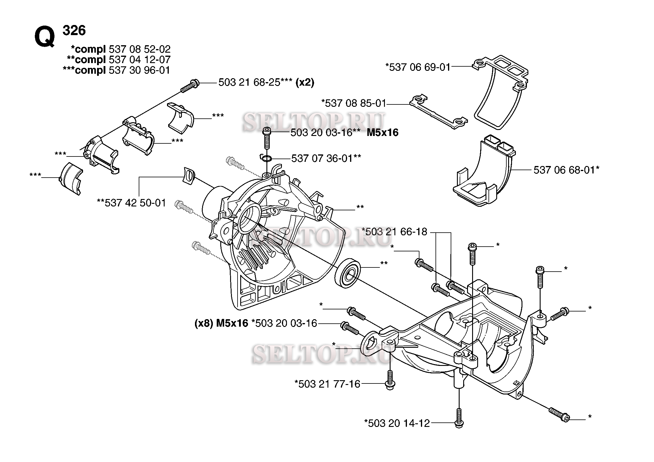 Картер для триммера Husqvarna 326 RX (c 2007-01), взрыв-схема: