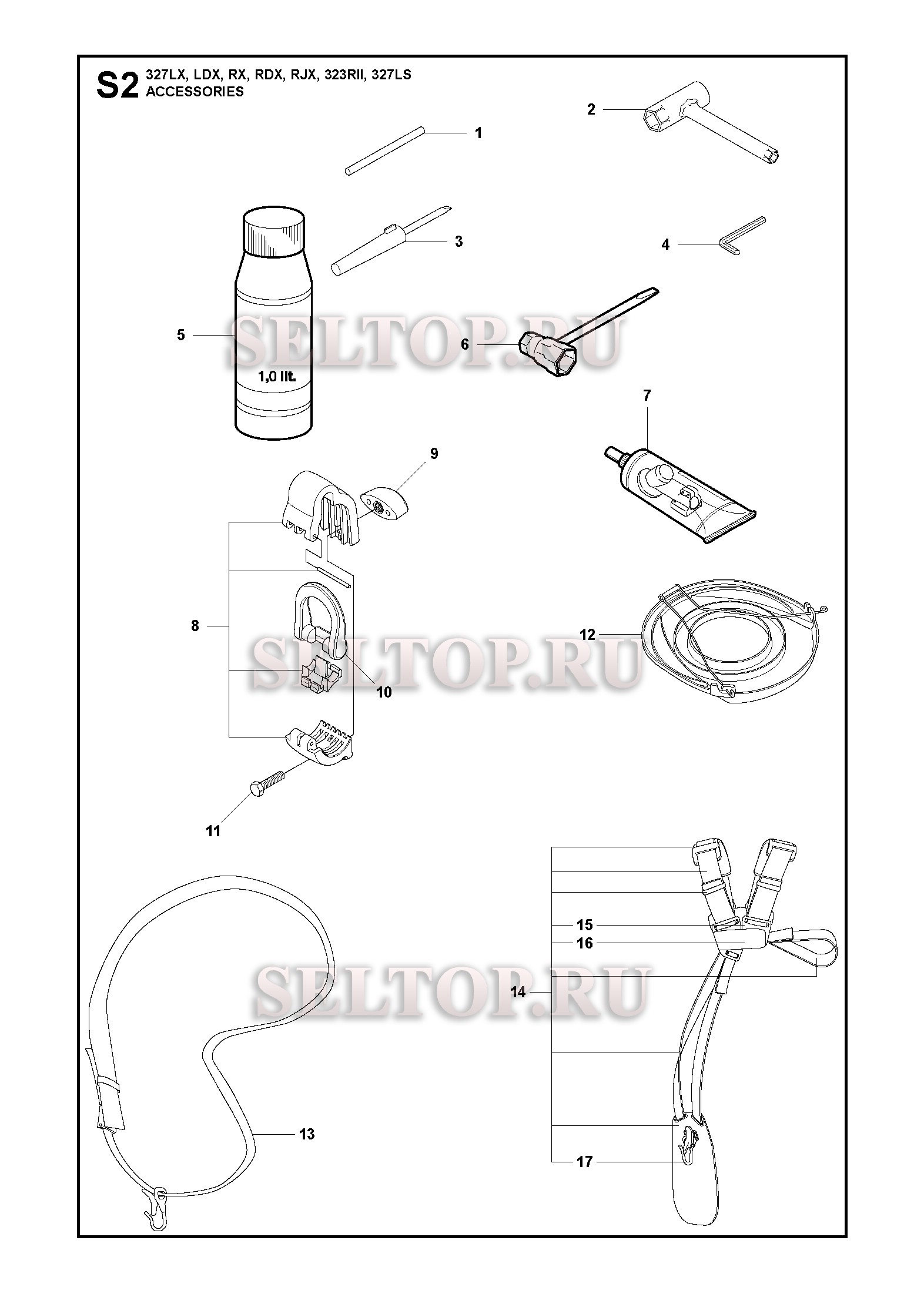 Аксессуары для триммера Husqvarna 327 LDx (с 2009-2010) (вариант 2), взрыв-схема: