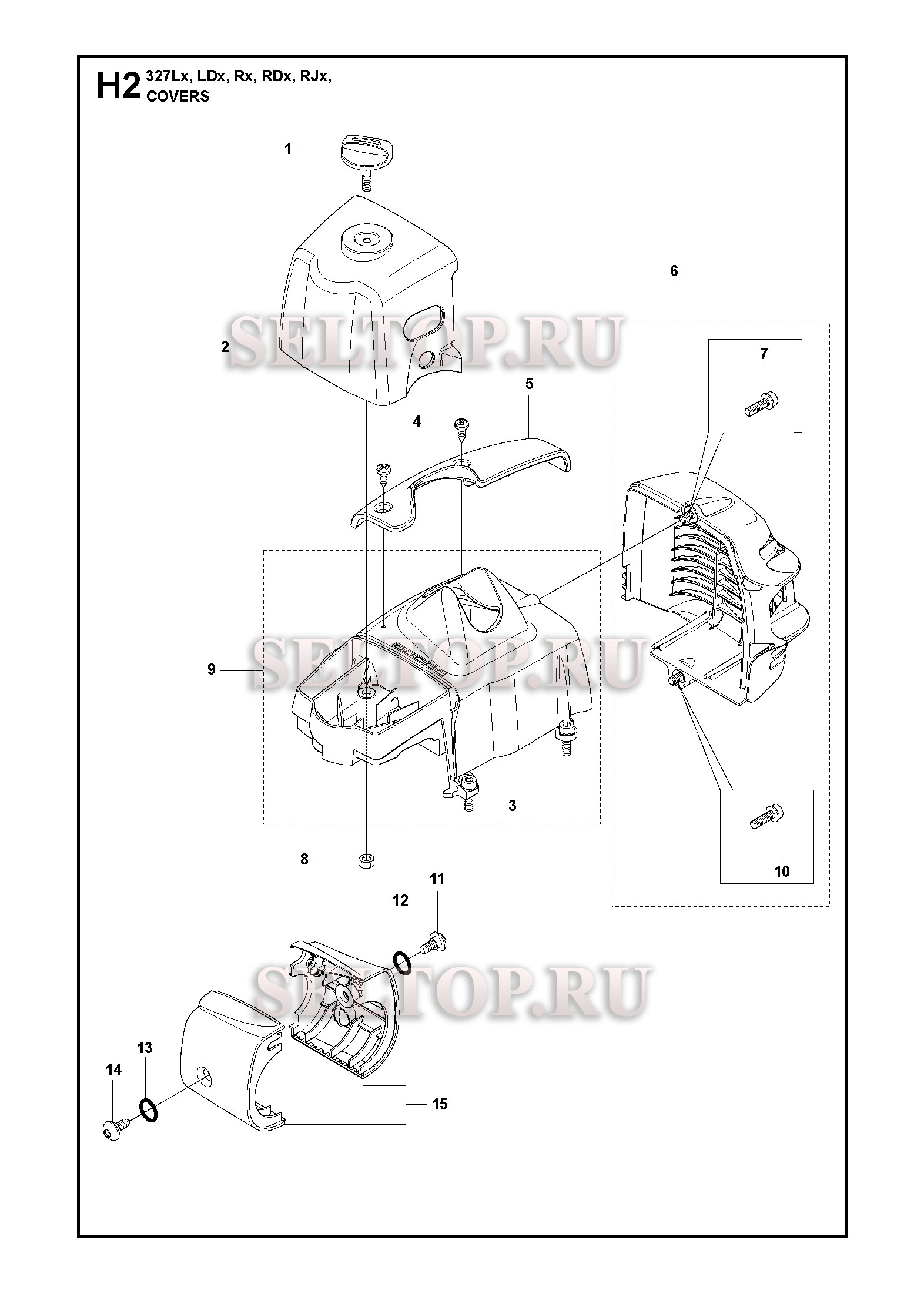 Кожух для триммера Husqvarna 327 LDx (с 2009-2010) (вариант 2), взрыв-схема: