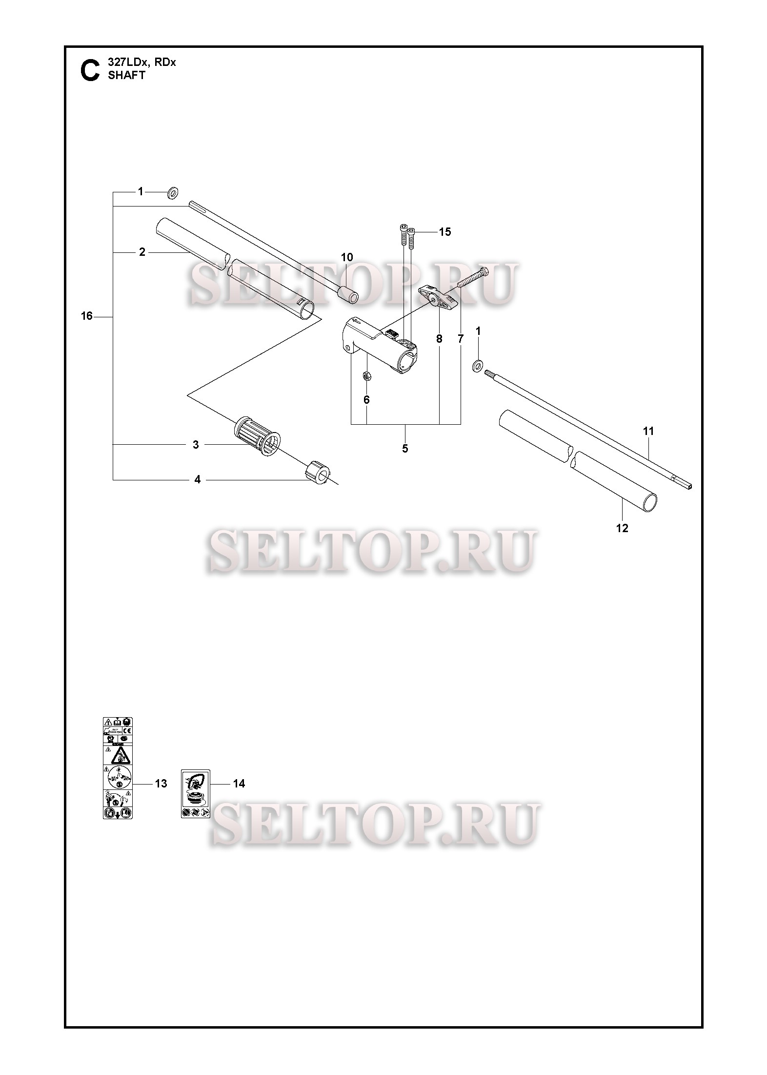 Ведущий вал для триммера Husqvarna 327 LDx (с 2012-01), взрыв-схема: