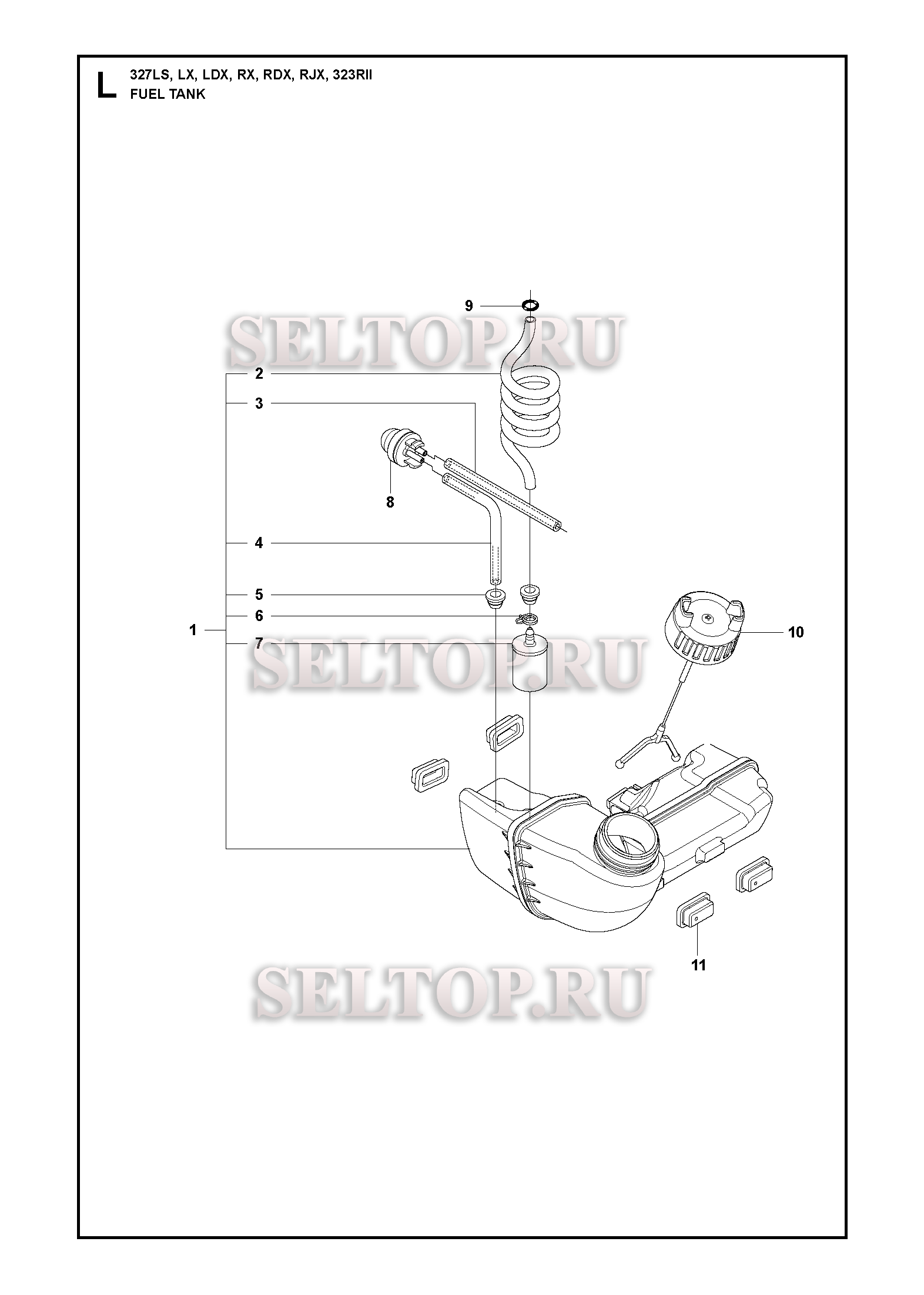Топливный бак для триммера Husqvarna 327 RJX (c 2009,2010), взрыв-схема:
