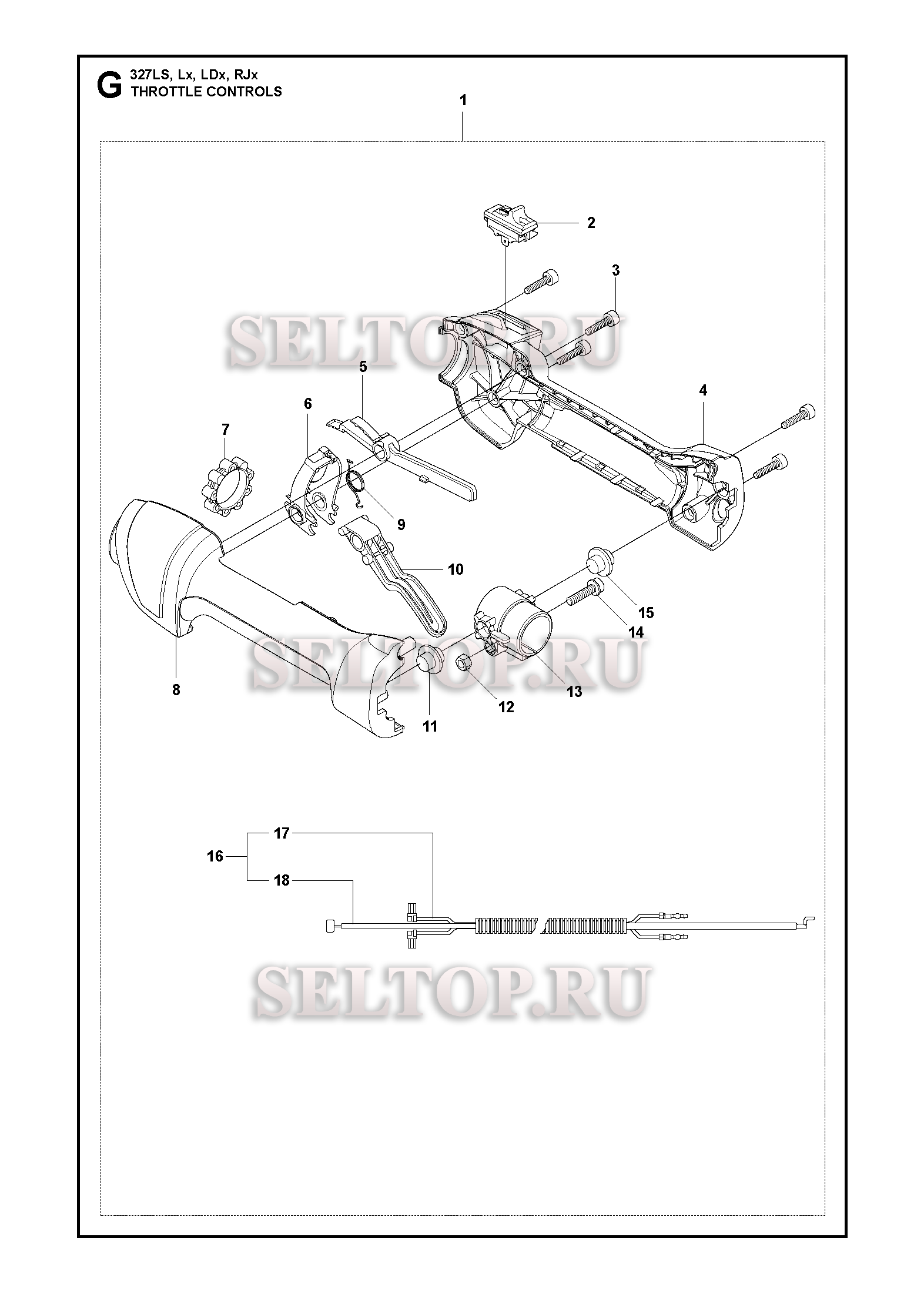 Ручка, рычаги управления для триммера Husqvarna 327 RJX (c 2012-01), взрыв-схема: