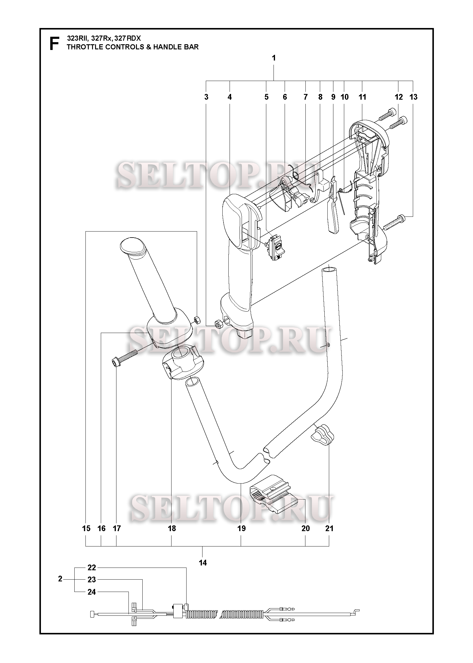Ручка, рычаги управления для триммера Husqvarna 327 RX (c 2012-01), взрыв-схема:
