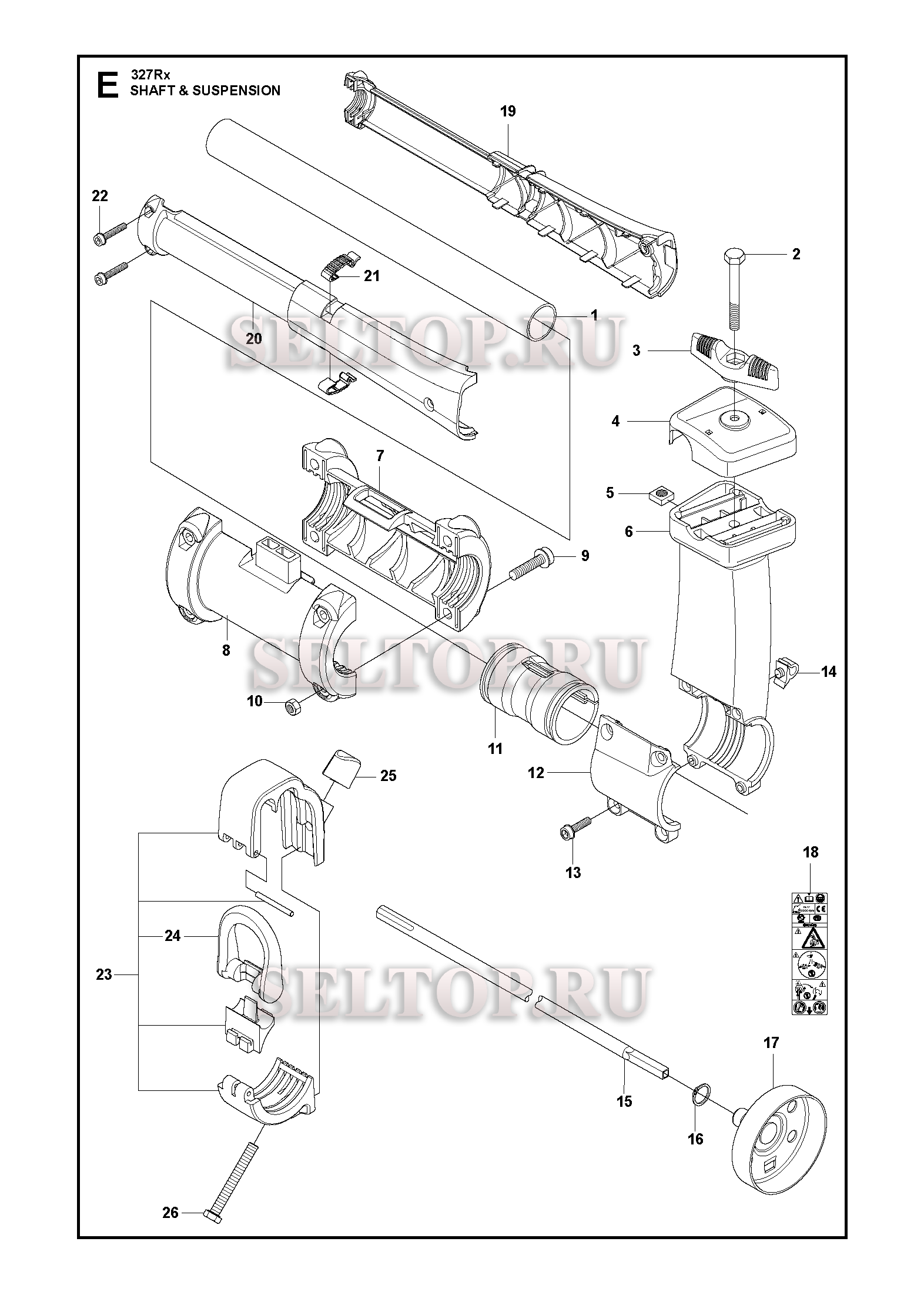 Ведущий вал, кронштейн ручки для триммера Husqvarna 327 RX (c 2012-01), взрыв-схема: