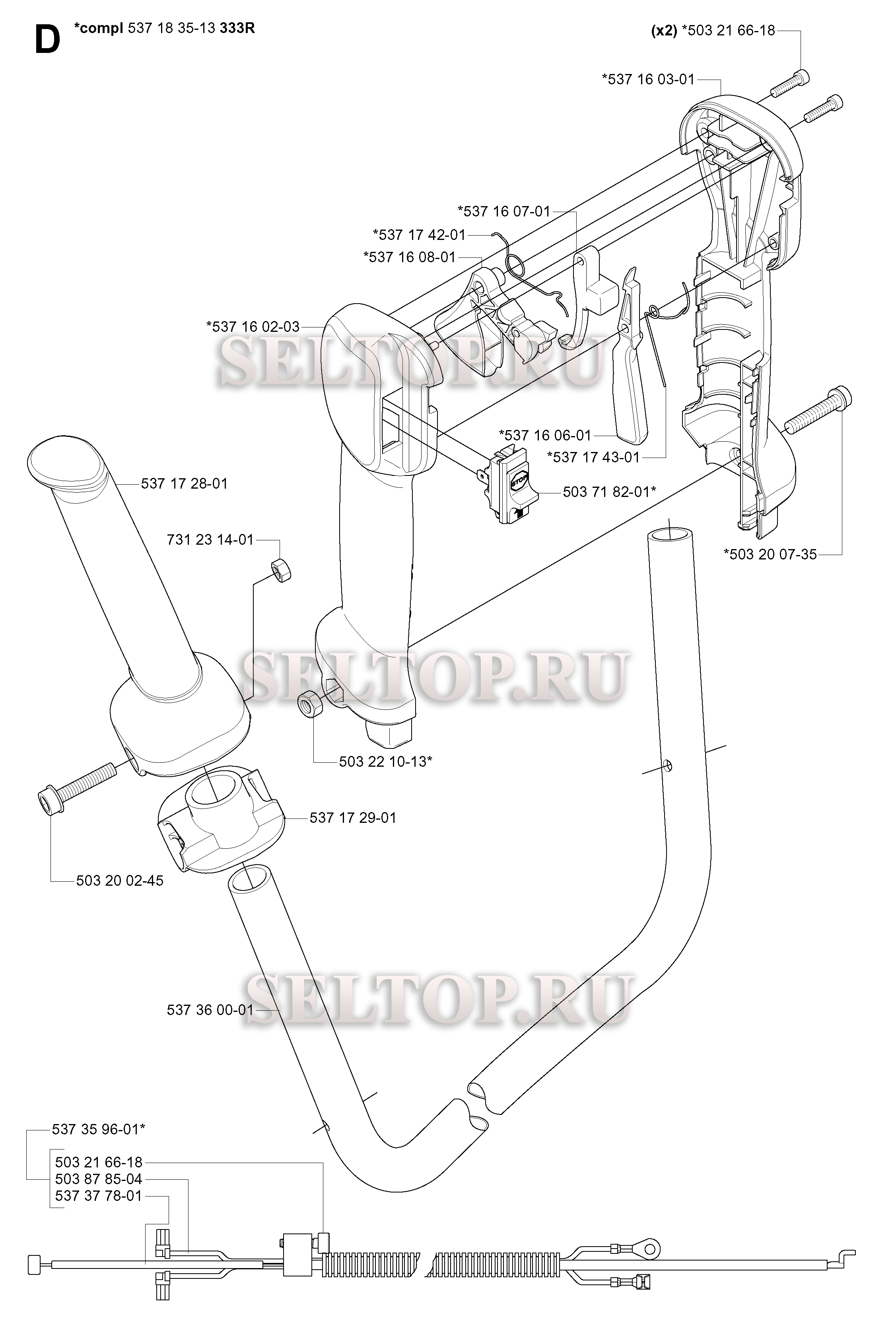 Ручка, рычаги управления для триммера Husqvarna 333 R (c 2005-06), взрыв-схема: