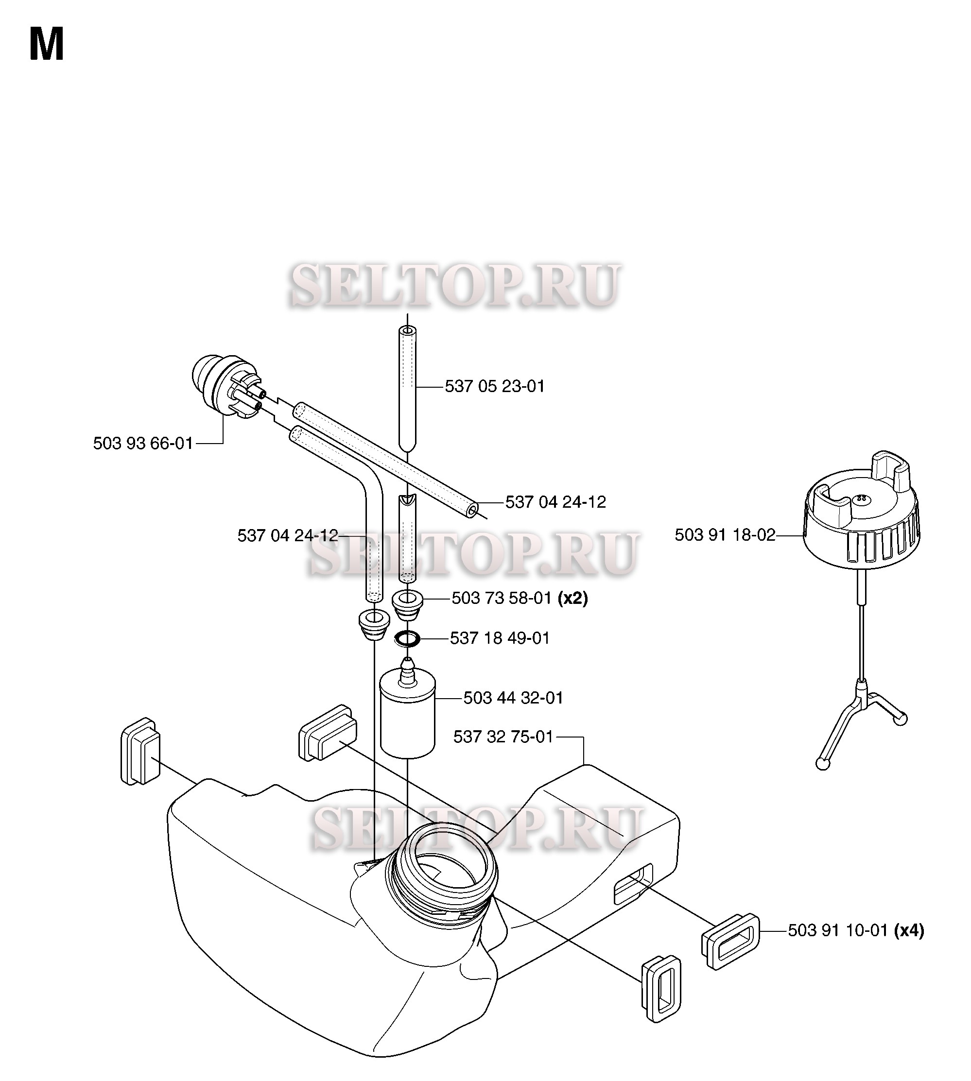 Топливный бак для триммера Husqvarna 335 LS (с 2007-01), взрыв-схема: