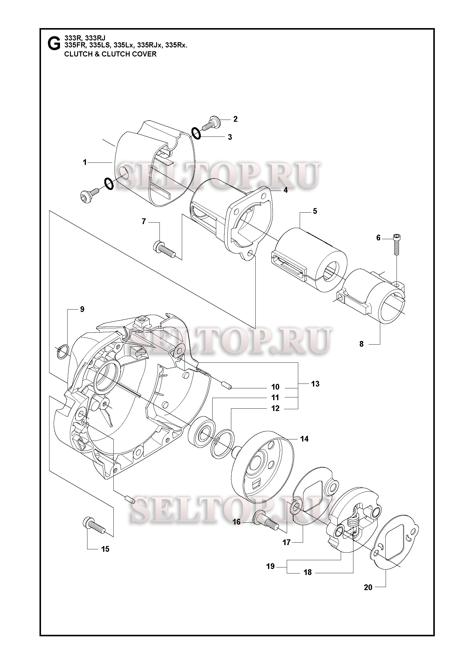 Сцепление для триммера Husqvarna 335 LS (с 2008-2010), взрыв-схема: