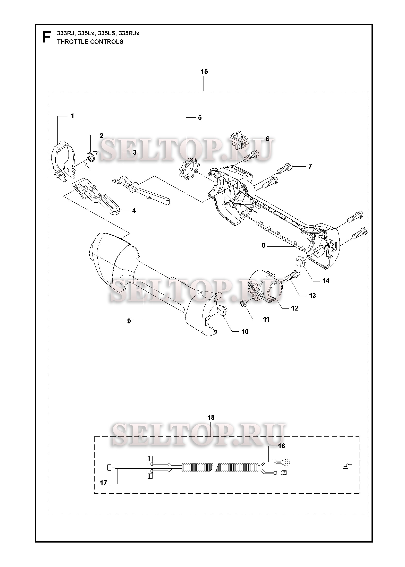 Управление дросселем для триммера Husqvarna 335 LS (с 2008-2010), взрыв-схема: