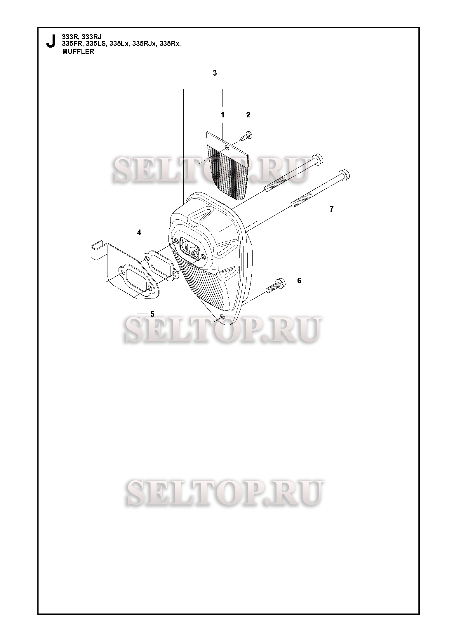 Глушитель для триммера Husqvarna 335 RJX (c 2008-2010), взрыв-схема:
