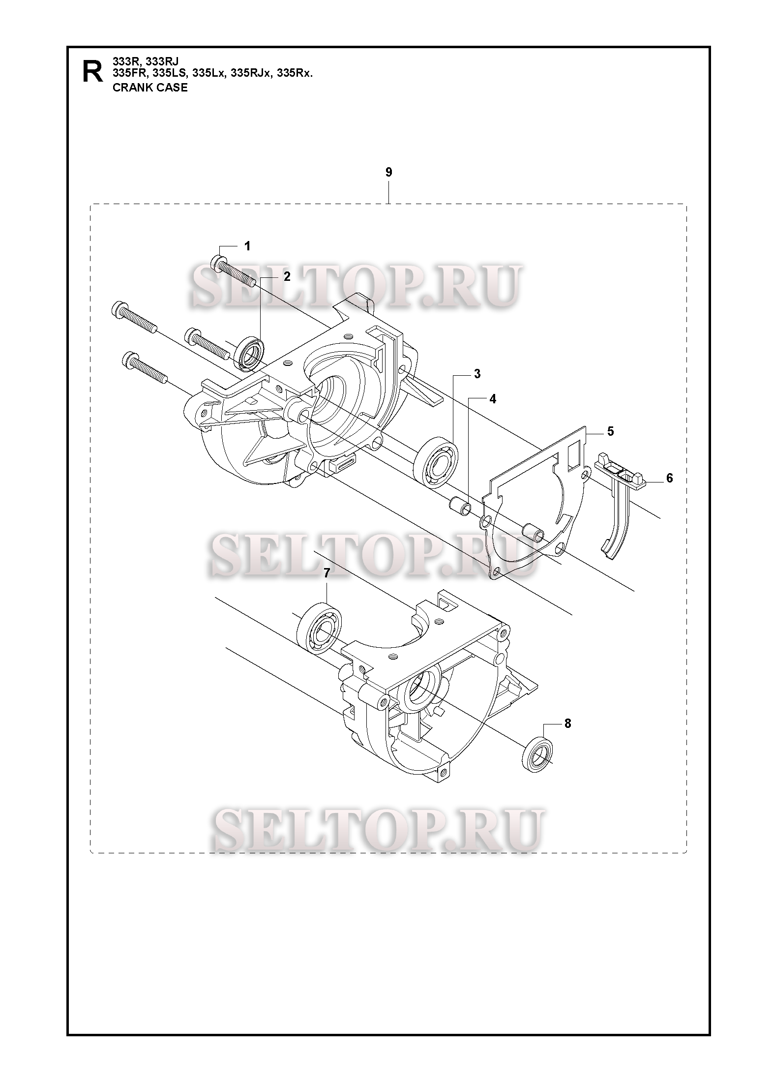 Картер для триммера Husqvarna 335 RX (c 2008-2010), взрыв-схема: