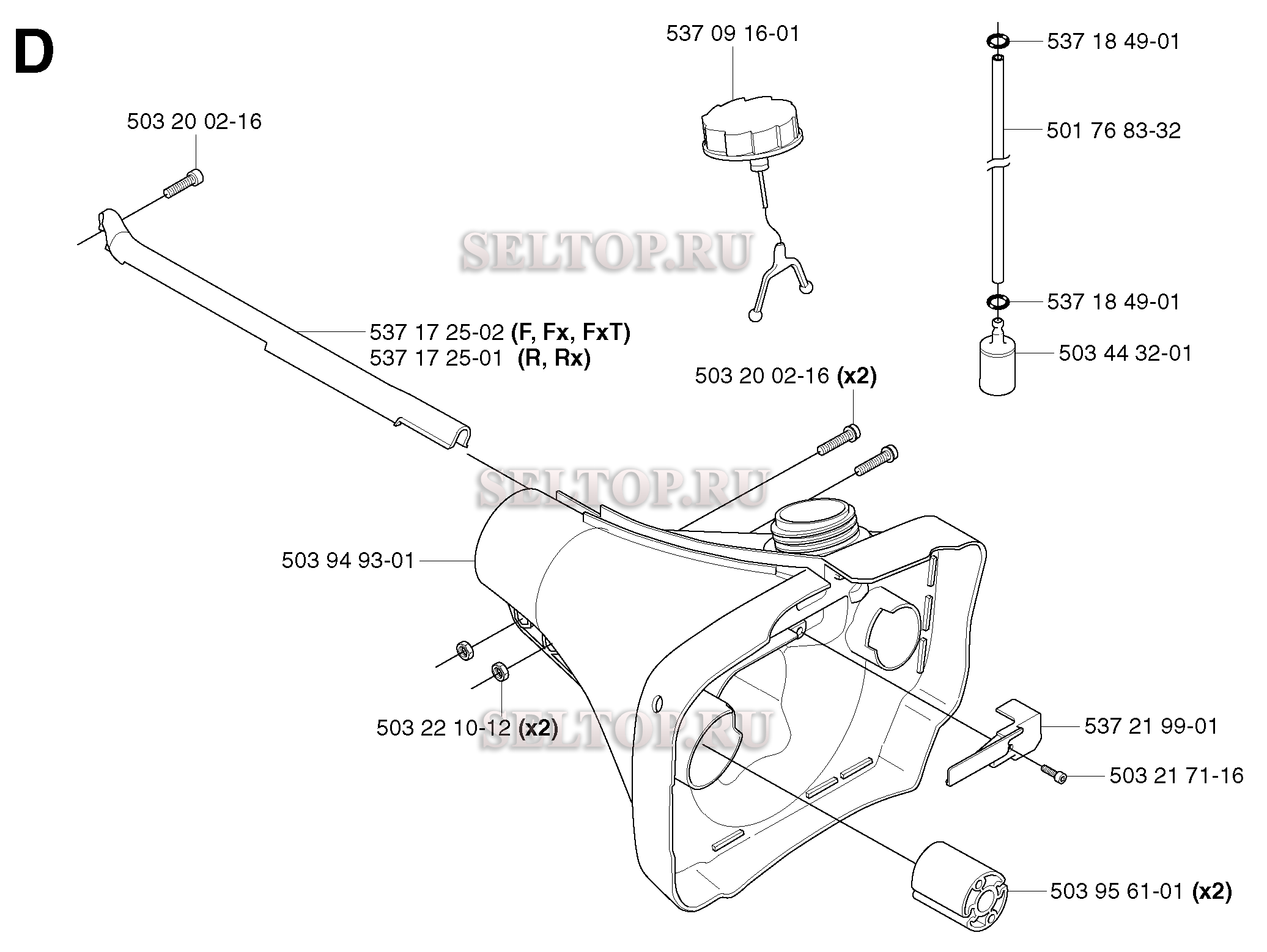 Топливный бак для триммера Husqvarna 343 F (c 2003-05), взрыв-схема: