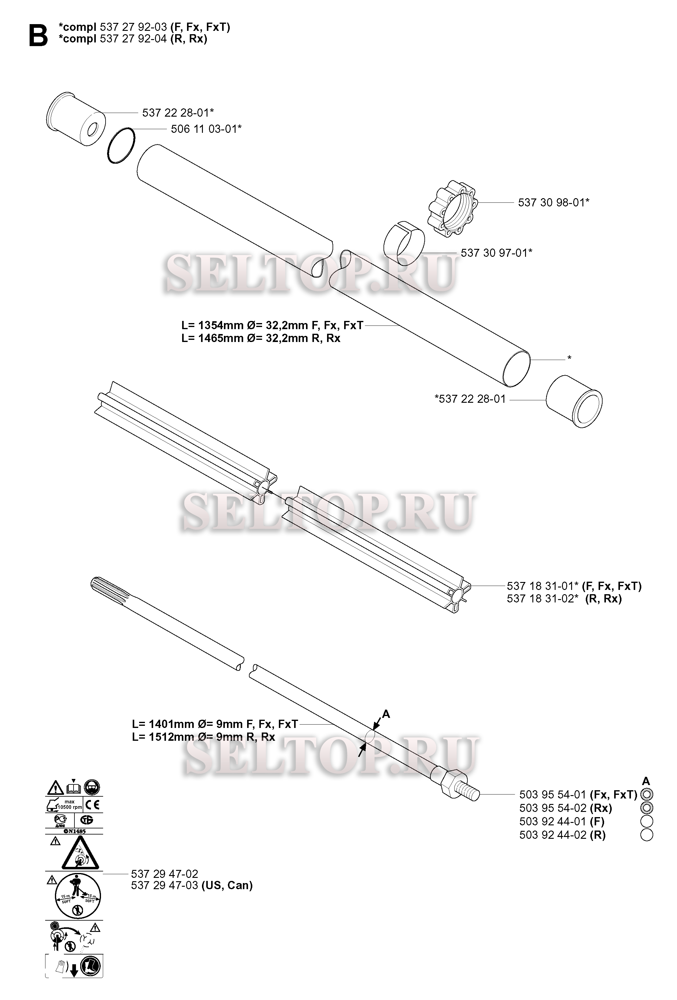 Ведущий вал для триммера Husqvarna 343 F (c 2004-08), взрыв-схема: