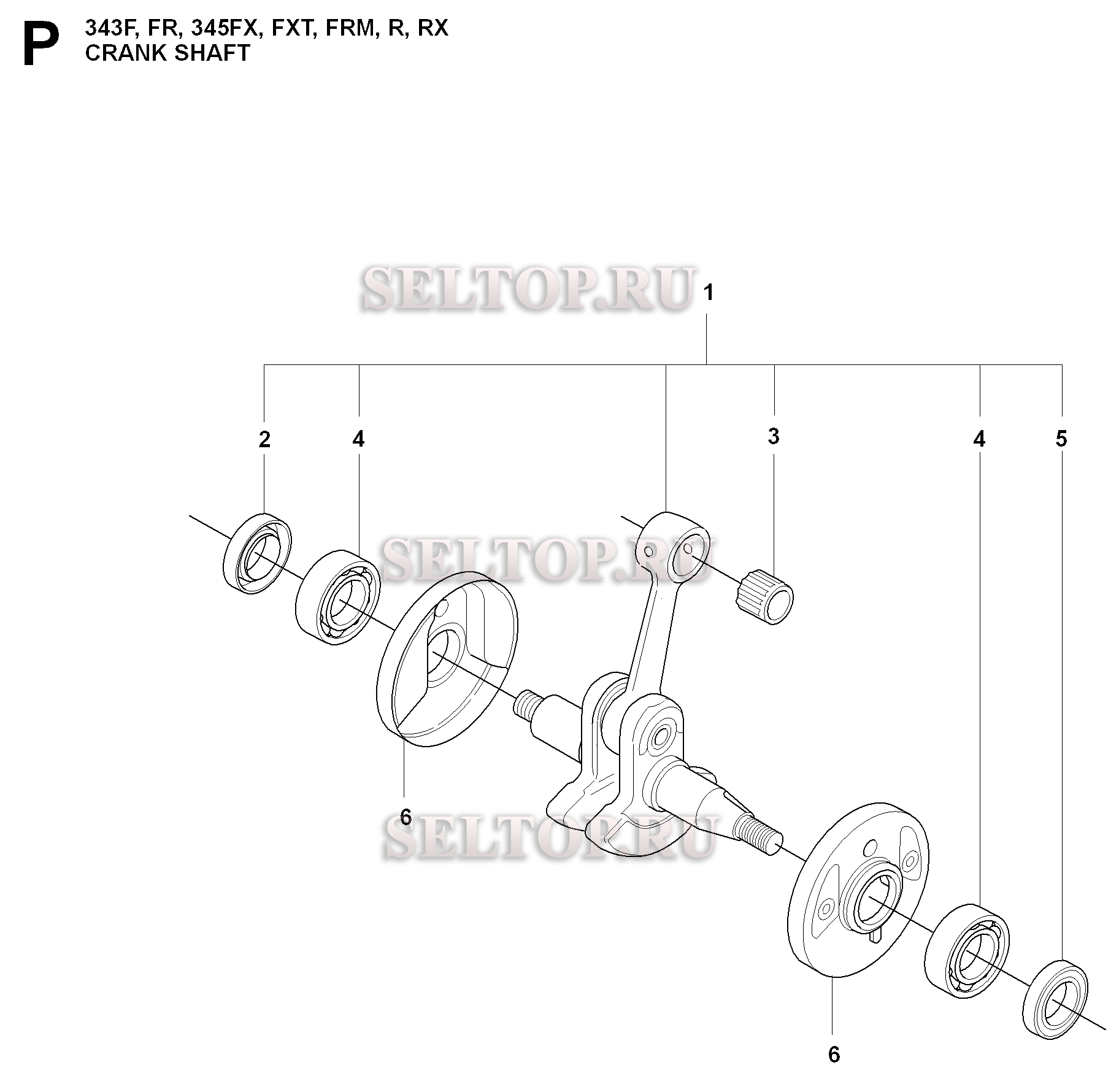 Коленвал для триммера Husqvarna 343 F (c 2008-05), взрыв-схема: