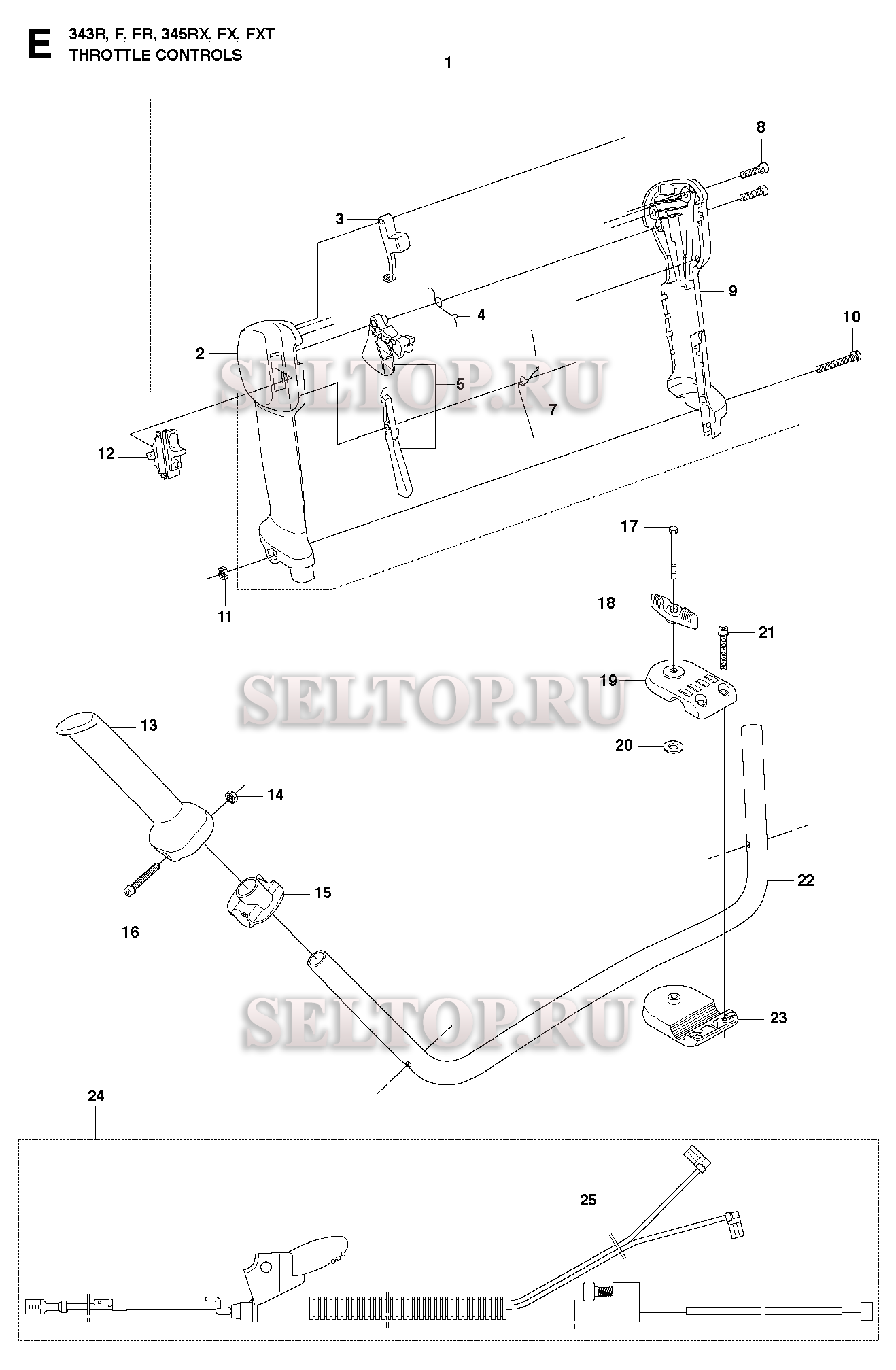 Управление дросселем для триммера Husqvarna 343 F (c 2010-09), взрыв-схема: