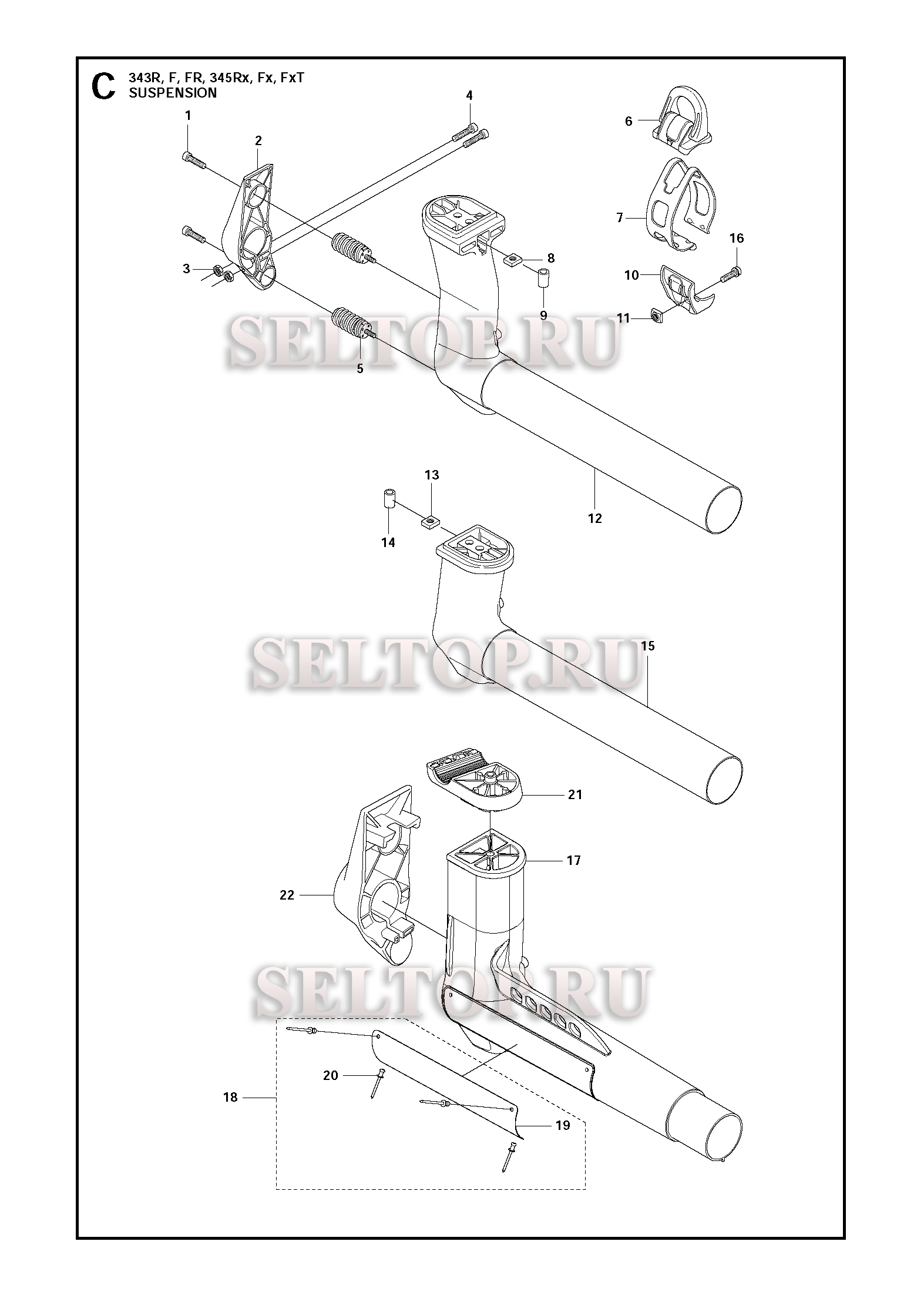 Кронштейн рукоятки в сборе для триммера Husqvarna 343 F (c 2011-02), взрыв-схема:
