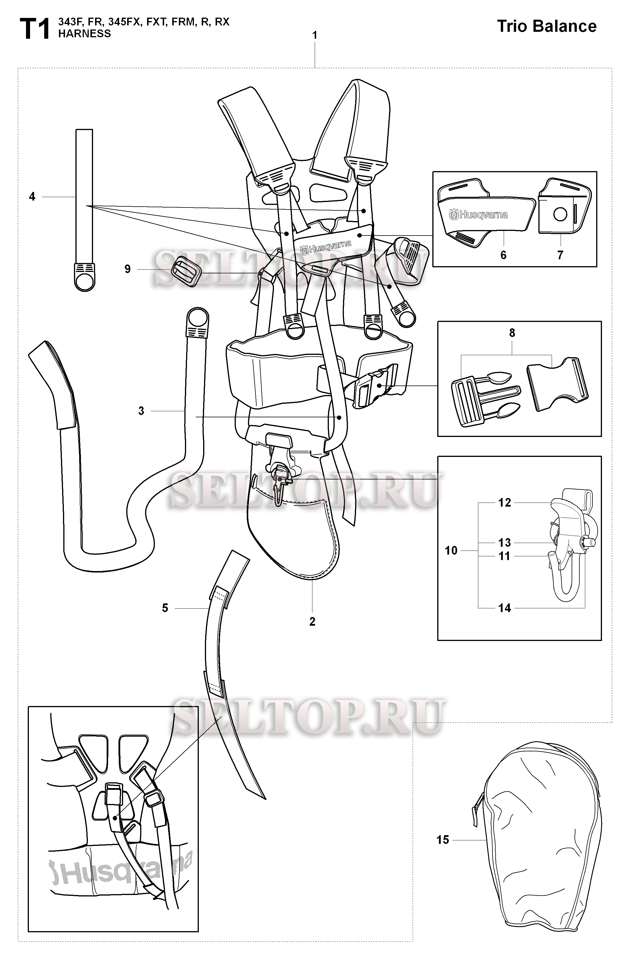Подвесная система для триммера Husqvarna 343 FRM (c 2008-05), взрыв-схема: