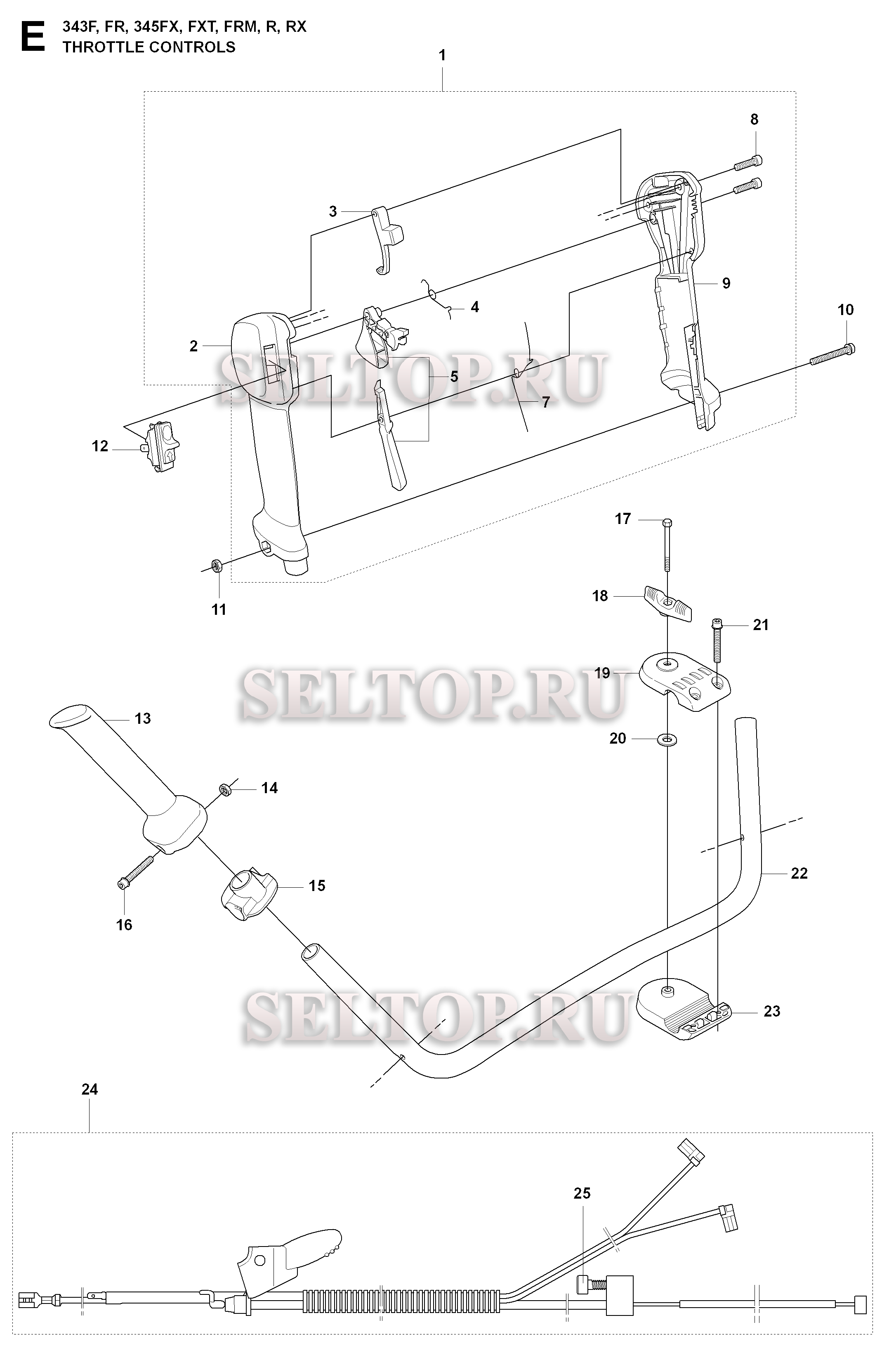 Управление дросселем для триммера Husqvarna 343 FRM (c 2008-05)